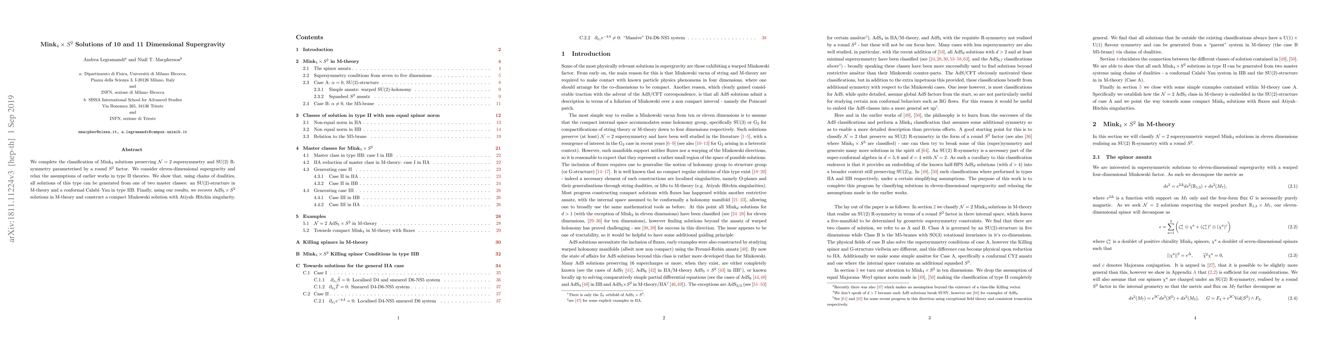 This paper classifies Minkowski solutions in 10 and 11-dimensional supergravity that preserve $\mathcal{N}=2$ supersymmetry and SU(2) R-symmetry. It identifies two master classes generating these solutions: an SU(2)-structure in M-theory and a conformal Calabi-Yau in type IIB, and constructs a compact Minkowski solution with an Atiyah-Hitchin singularity.