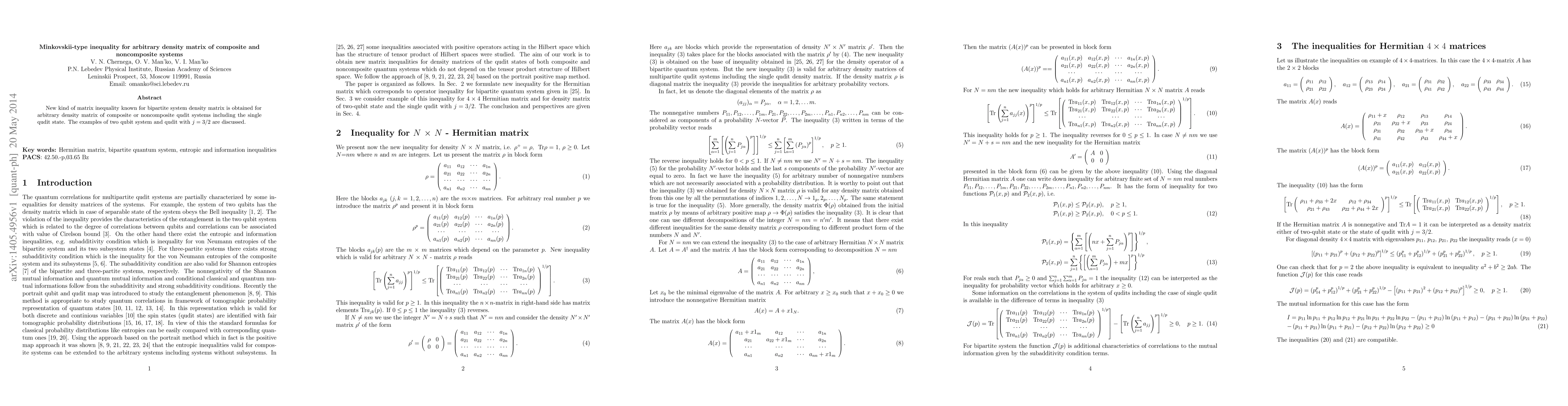 New kind of matrix inequality known for bipartite system density matrix is obtained for arbitrary density matrix of composite or noncomposite qudit systems including the single qudit state. The examples of two qubit system and qudit with j=3/2 are discussed.