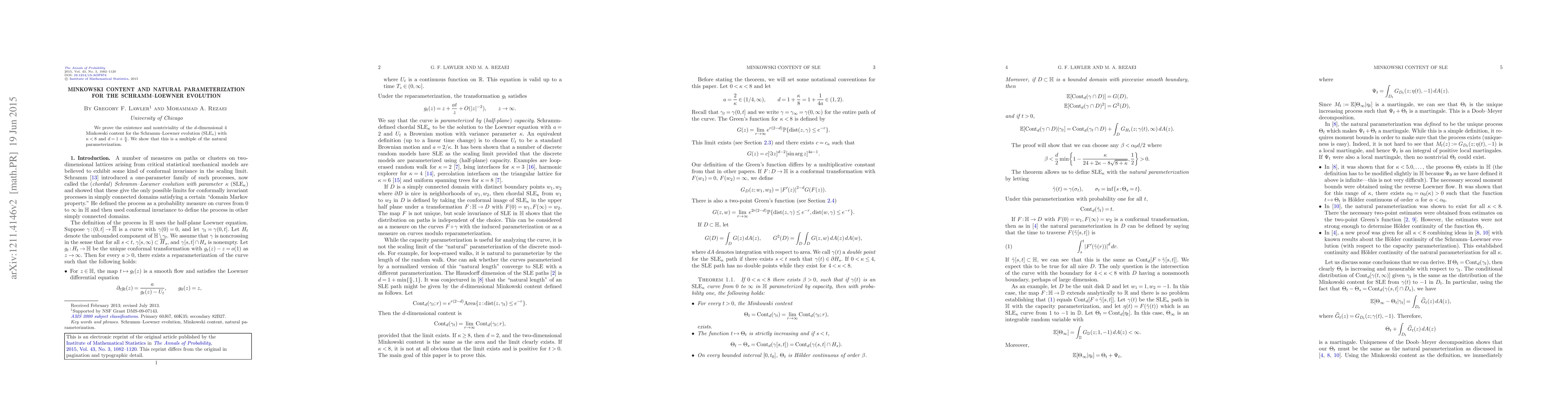 Summary: This paper establishes the existence and nontriviality of the $d$-dimensional Minkowski content for Schramm-Loewner evolution ($\mathrm{SLE}_{\kappa}$) when $\kappa<8$, with $d=1+\frac{\kappa}{8}$, and demonstrates its equivalence to a multiple of the natural parameterization.