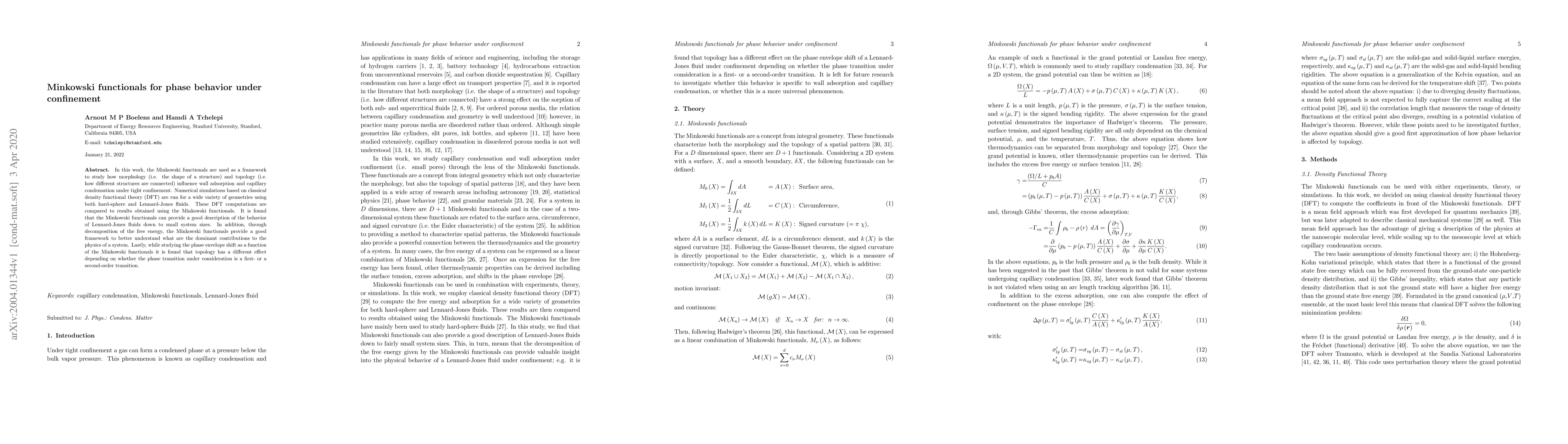 This paper uses Minkowski functionals to analyze the influence of morphology and topology on wall adsorption and capillary condensation in confined systems. The study finds that these functionals effectively describe Lennard-Jones fluid behavior and provide insights into the dominant physical contributions, with topology's effect varying based on the type of phase transition.