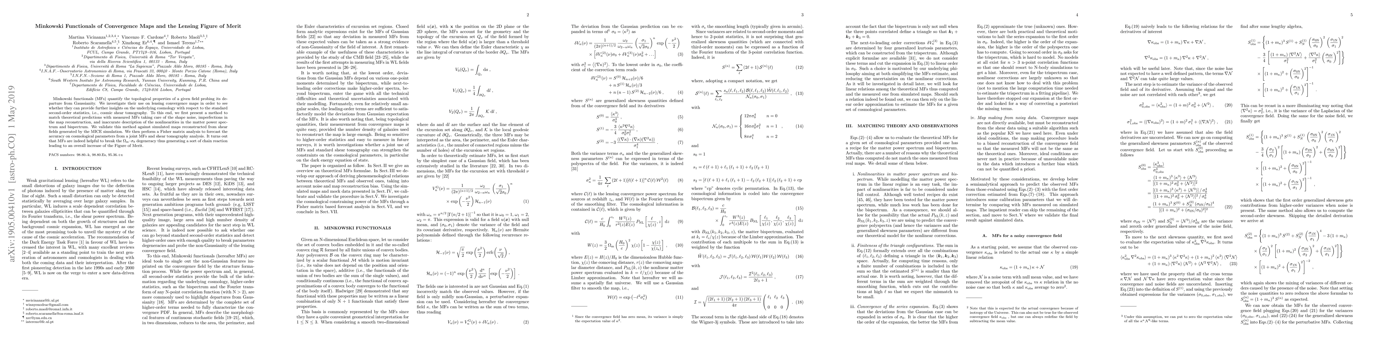 Minkowski functionals can help break a degeneracy in cosmological parameters, increasing the Figure of Merit for lensing convergence maps when combined with shear tomography.