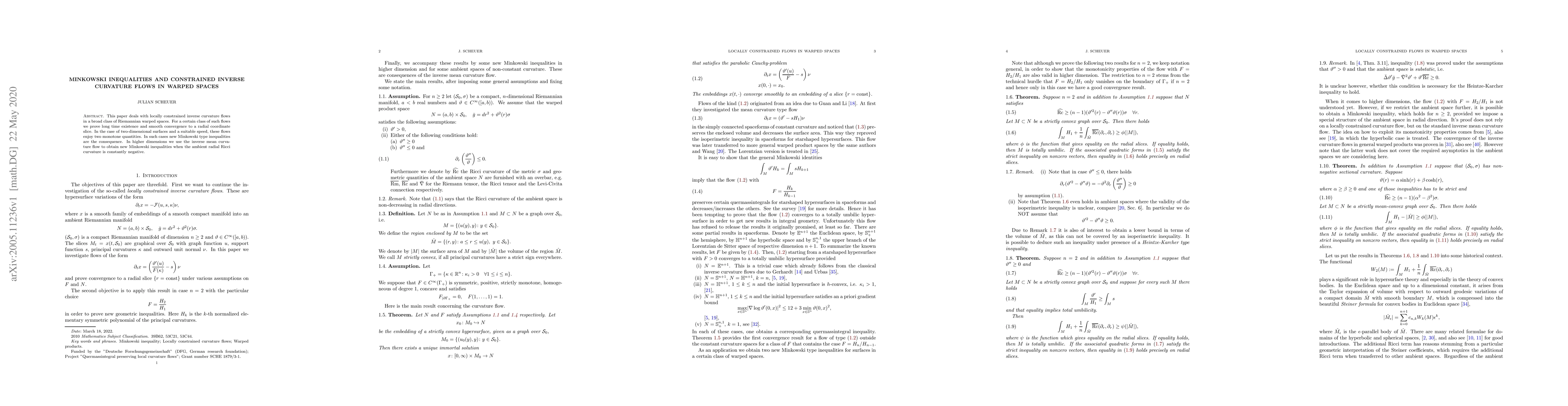 This paper proves long-time existence and smooth convergence of locally constrained inverse curvature flows in warped Riemannian spaces, deriving new Minkowski inequalities in two dimensions and utilizing inverse mean curvature flow in higher dimensions with negatively constant Ricci curvature.