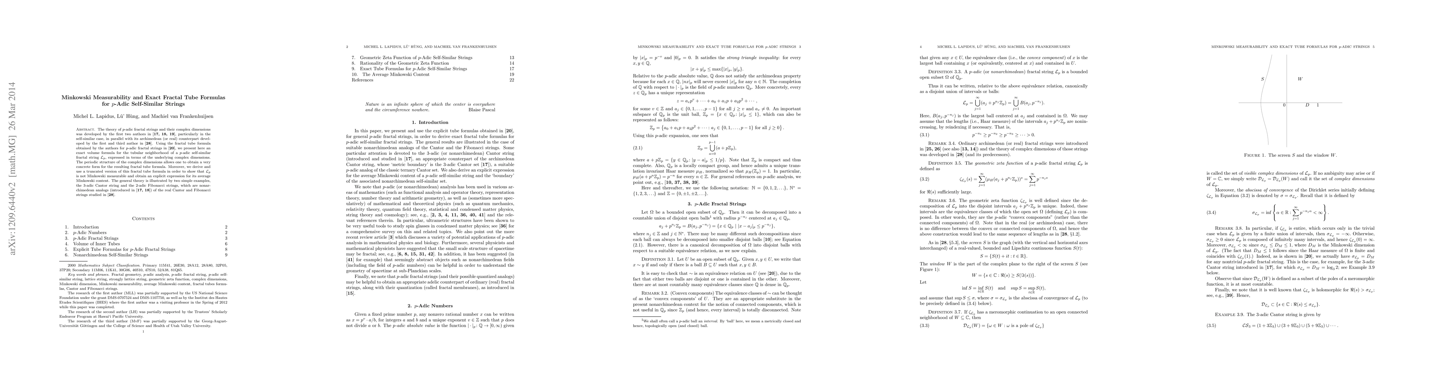 This paper develops an exact volume formula for the tubular neighborhood around p-adic self-similar fractal strings using a fractal tube formula, revealing these strings are not Minkowski measurable and providing an explicit expression for their average Minkowski content. Two illustrative examples, the 3-adic Cantor string and the 2-adic Fibonacci strings, demonstrate the theory.
