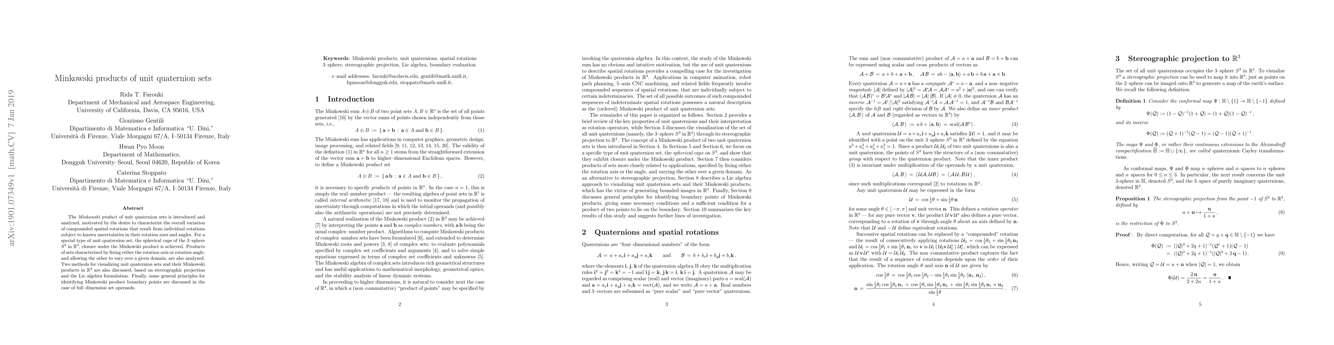 This paper introduces and analyzes the Minkowski product of unit quaternion sets to characterize compounded spatial rotations with uncertainties. It focuses on spherical caps of the 3-sphere $S^3$ and discusses methods for visualizing these sets and their products in $\mathbb{R}^3$.