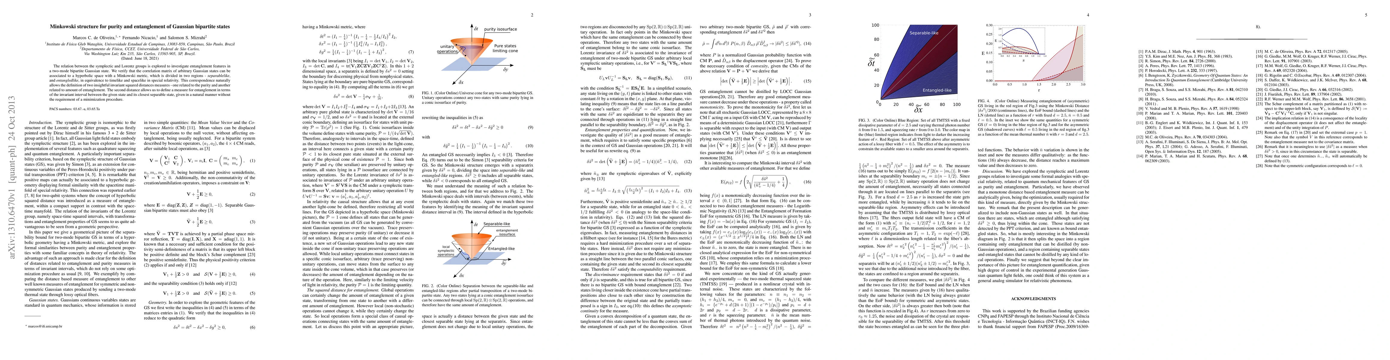 This paper explores the connection between the symplectic and Lorentz groups to define purity and entanglement measures for Gaussian bipartite states. It introduces a Minkowski metric on the correlation matrix, enabling the classification of states into separable and entangled regions, and provides two invariant distance measures: one for purity and another for entanglement based on the invariant interval to the nearest separable state.