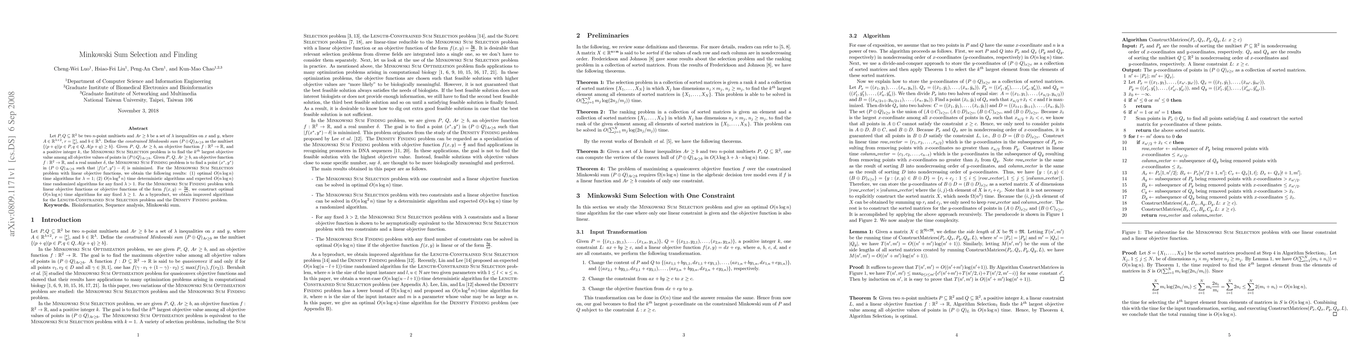 This paper solves two optimization problems using Minkowski sum: one with linear objectives that can be solved in O(n log n) time, and the other with a specific form of non-linear objective functions also solvable in O(n log n) time.
