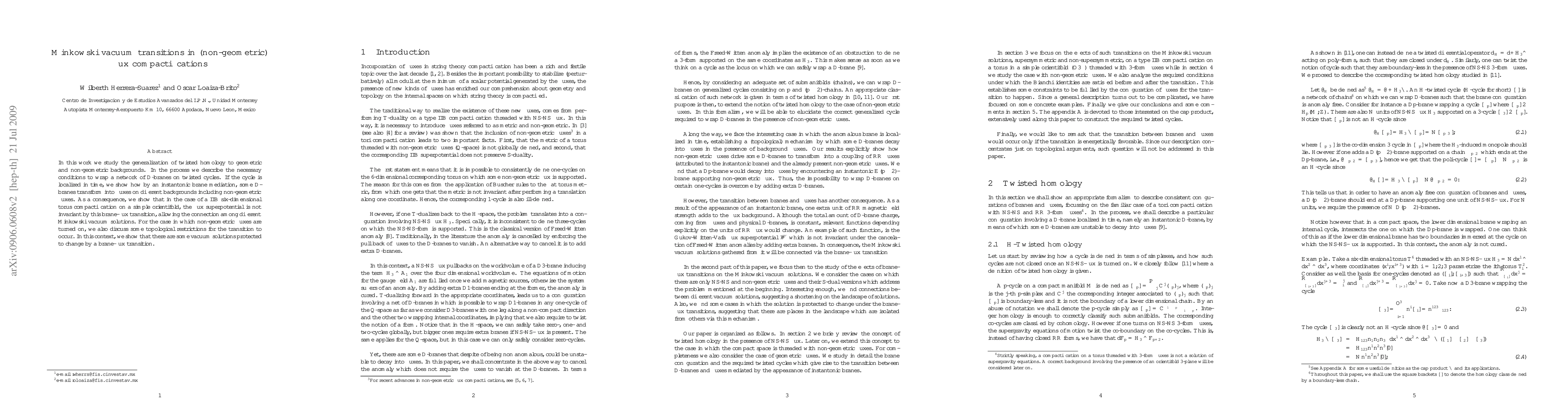 In this work we study the generalization of twisted homology to geometric and non-geometric backgrounds. In the process we describe the necessary conditions to wrap a network of D-branes on twisted cycles. If the cycle is localized in time, we show how by an instantonic brane mediation, some D-branes transform into fluxes on different backgrounds including non-geometric fluxes. As a consequence, we show that in the case of a IIB six-dimensional torus compactification on a simple orientifold, the flux superpotential is not invariant by this brane-flux transition, allowing the connection among different Minkowski vacuum solutions. For the case in which non-geometric fluxes are turned on, we also discuss some topological restrictions for the transition to occur. In this context, we show that there are some vacuum solutions protected to change by a brane-flux transition.