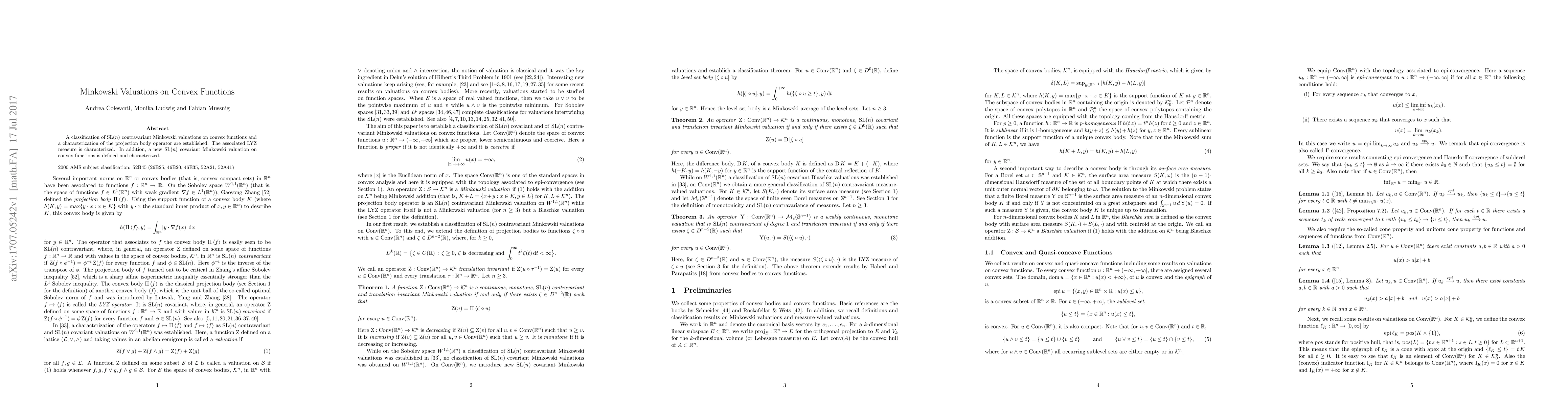 This paper classifies SL(n) contravariant Minkowski valuations on convex functions and characterizes the projection body operator, defining and characterizing a new SL(n) covariant Minkowski valuation alongside the LYZ measure.