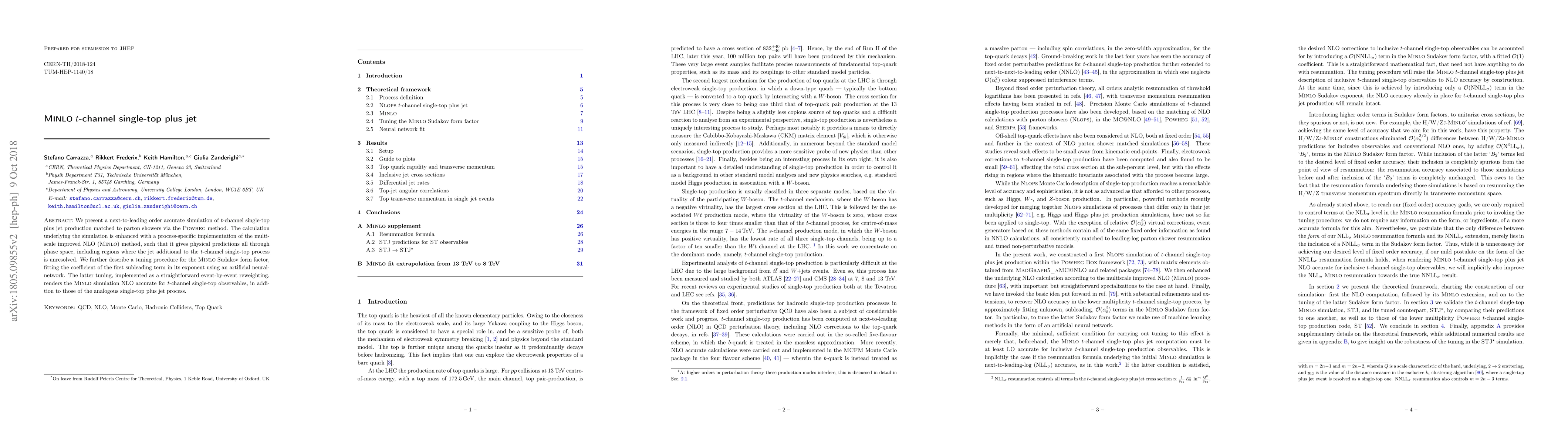 We present a next-to-leading order accurate simulation of t-channel single-top plus jet production matched to parton showers via the POWHEG method. The calculation underlying the simulation is enhanced with a process-specific implementation of the multi-scale improved NLO (MINLO) method, such that it gives physical predictions all through phase space, including regions where the jet additional to the t-channel single-top process is unresolved. We further describe a tuning procedure for the MINLO Sudakov form factor, fitting the coefficient of the first subleading term in its exponent using an artificial neural-network. The latter tuning, implemented as a straightforward event-by-event reweighting, renders the MINLO simulation NLO accurate for t-channel single-top observables, in addition to those of the analogous single-top plus jet process.