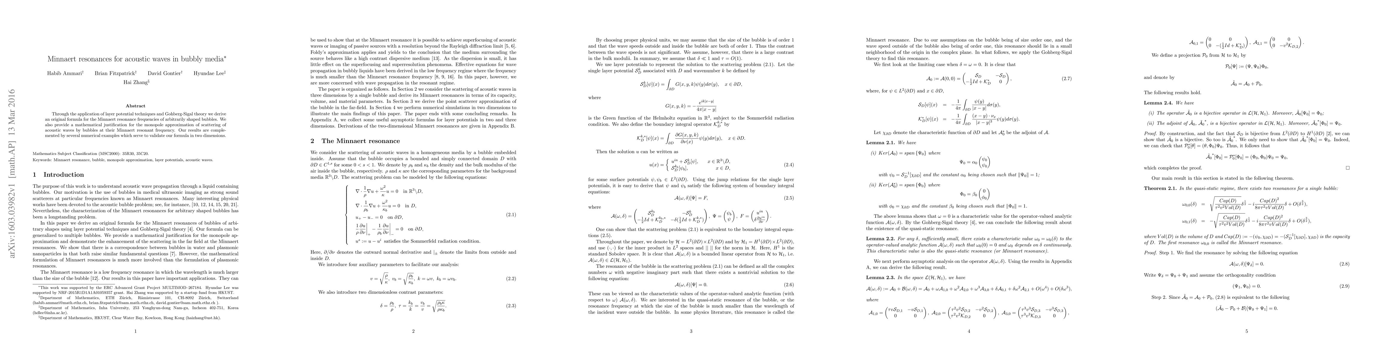 This paper develops a novel formula for Minnaert resonance frequencies of arbitrarily shaped bubbles using layer potential techniques and Gohberg-Sigal theory, and validates the monopole approximation for acoustic wave scattering at these frequencies with numerical examples.