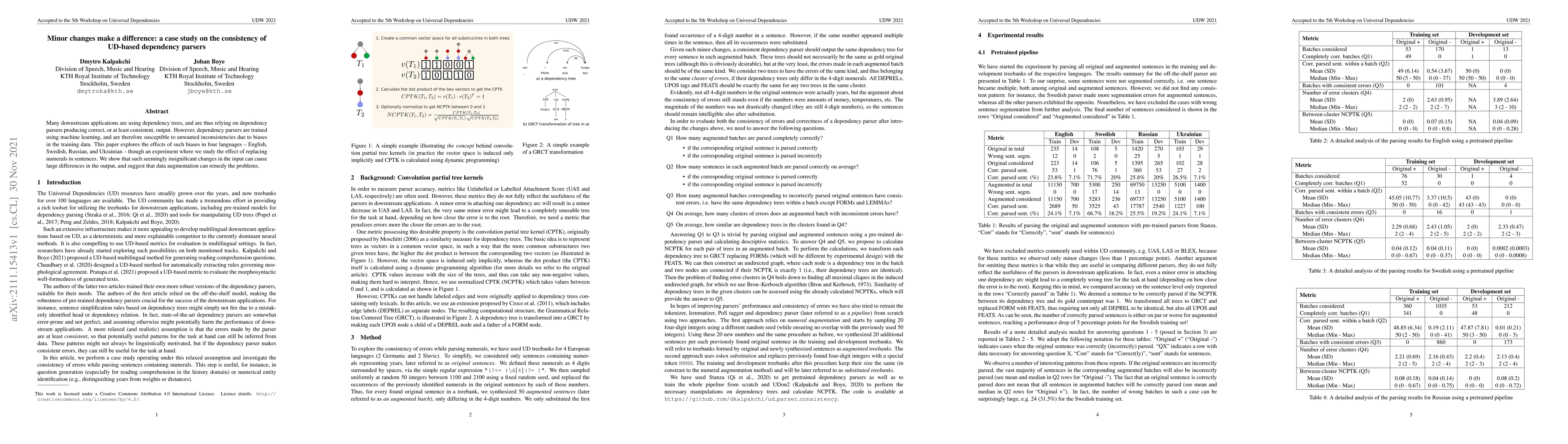 Many downstream applications are using dependency trees, and are thus relying on dependency parsers producing correct, or at least consistent, output. However, dependency parsers are trained using machine learning, and are therefore susceptible to unwanted inconsistencies due to biases in the training data. This paper explores the effects of such biases in four languages - English, Swedish, Russian, and Ukrainian - though an experiment where we study the effect of replacing numerals in sentences. We show that such seemingly insignificant changes in the input can cause large differences in the output, and suggest that data augmentation can remedy the problems.
