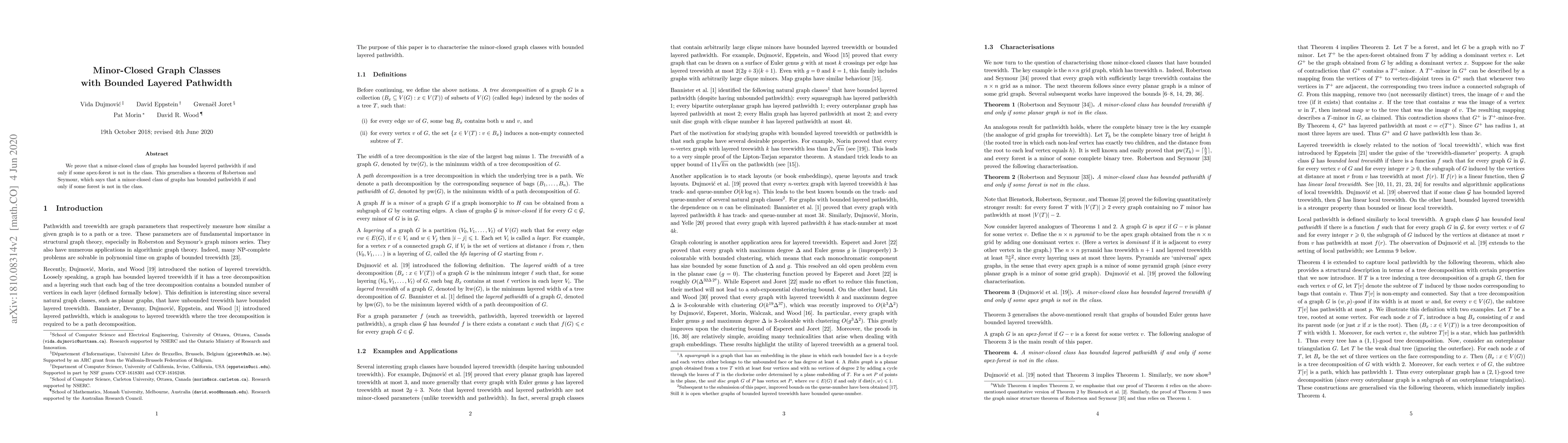 Summary: This paper proves that a minor-closed class of graphs has bounded layered pathwidth if and only if it excludes some apex-forest, generalizing Robertson and Seymour's theorem on bounded pathwidth.