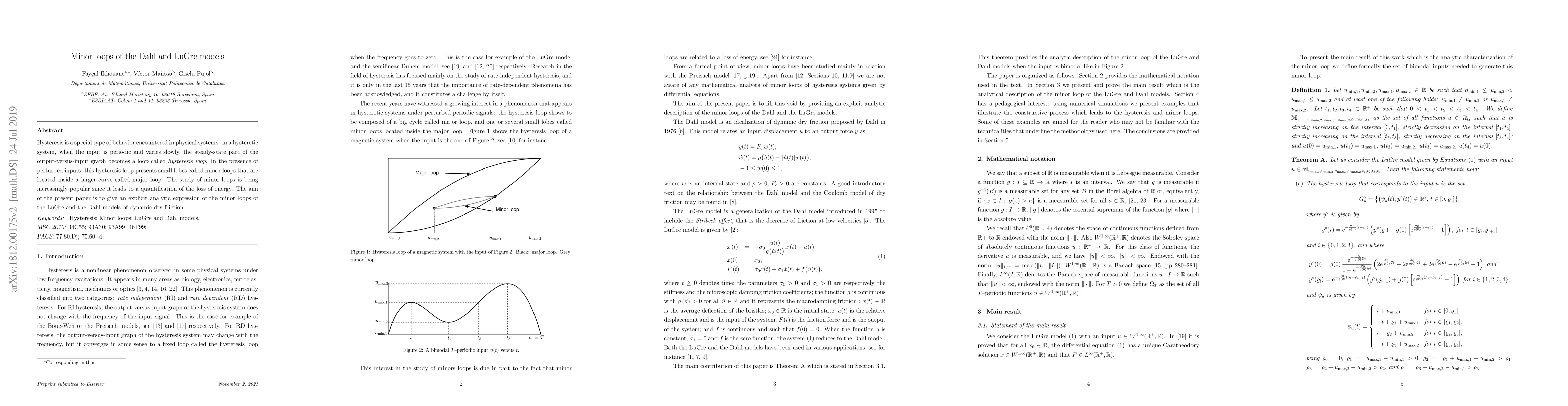 This paper provides an explicit analytic expression for the minor loops in the Dahl and LuGre models of dynamic dry friction, which are small energy loss features within the larger hysteresis loop. The study aims to quantify energy dissipation in hysteretic systems.