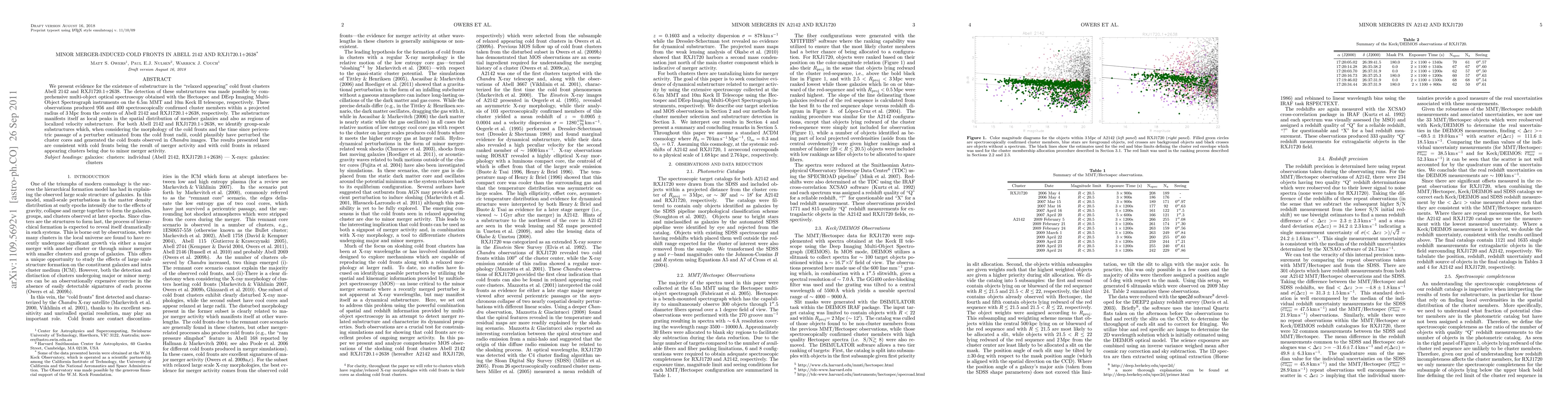 This paper identifies substructures in the clusters Abell 2142 and RXJ1720.1+2638 using multi-object optical spectroscopy, suggesting minor mergers induced cold fronts. The findings support the hypothesis that cold fronts in seemingly relaxed clusters result from minor merger activity.