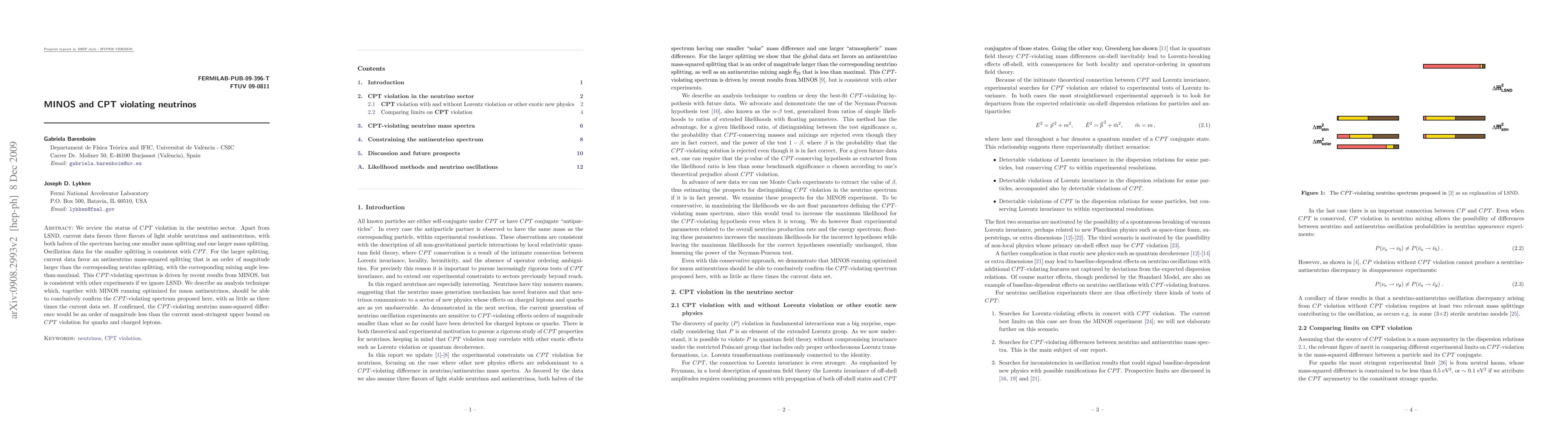 This paper reviews the potential for CPT violation in neutrino oscillations, highlighting recent MINOS results favoring a CPT-violating mass-splitting spectrum. The proposed spectrum suggests a significantly larger mass-squared difference for antineutrinos compared to neutrinos, which could be confirmed with further data.