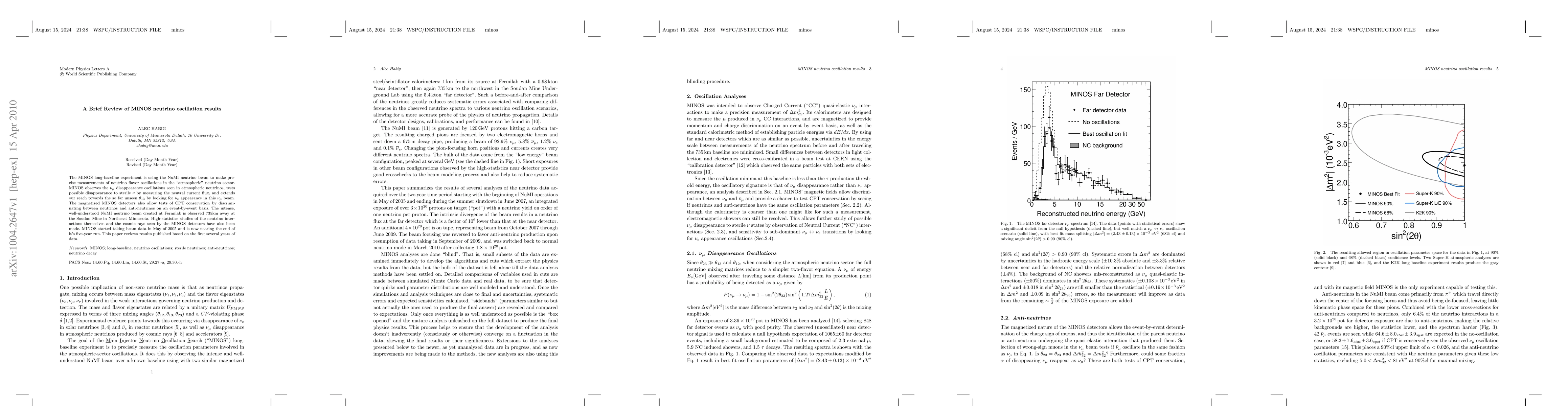 The MINOS experiment measures neutrino flavor oscillations using a long-baseline beam, observing $\nu_\mu$ disappearance and searching for $\nu_e$ appearance to probe the $\theta_{13}$ mixing angle. The results also test CPT conservation and provide high-statistics studies of neutrino interactions.