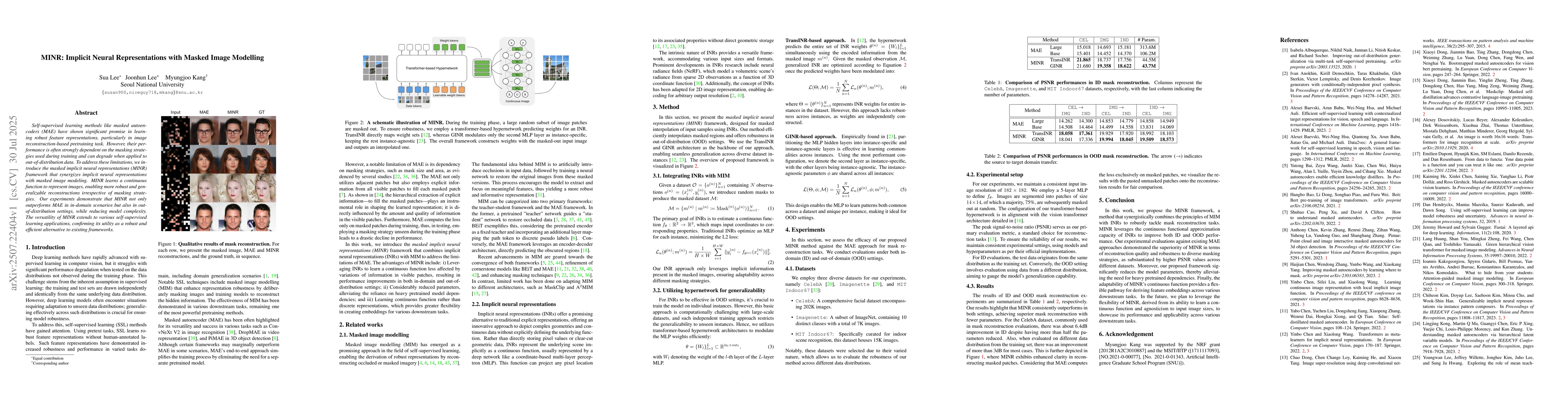 The research introduces MINR, a framework that combines masked image modeling (MIM) with implicit neural representations (INRs) for robust image reconstruction. It utilizes transformer-based hypernetworks to modulate MLP weights, ensuring generalization across diverse datasets and instances.