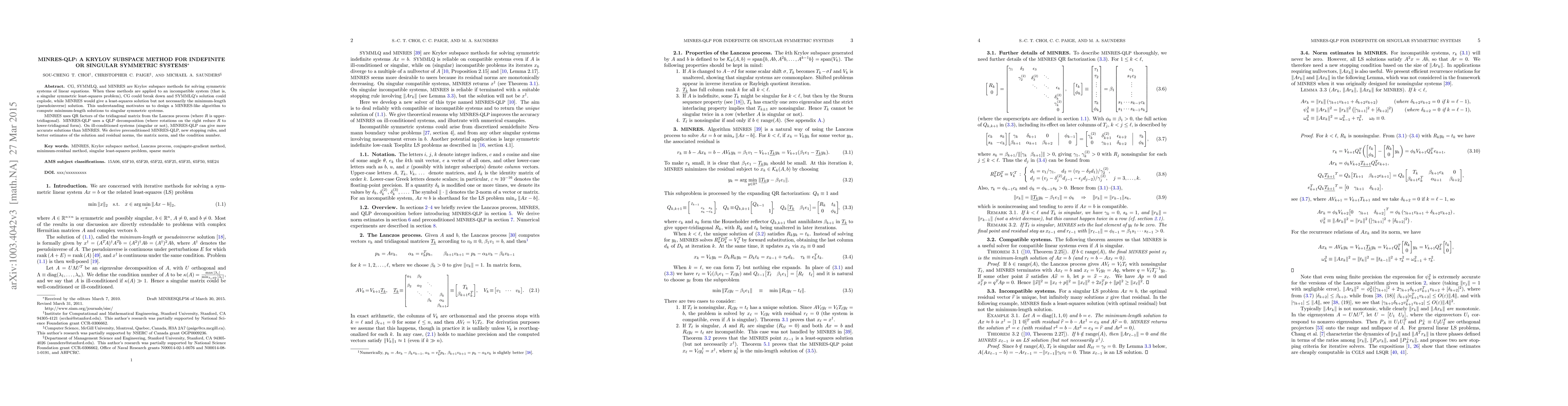 MINRES-QLP is a refined Krylov subspace method for solving singular symmetric linear systems, offering more accurate solutions than MINRES by using a QLP decomposition instead of QR. It provides better estimates for solution and residual norms, matrix norm, and condition number.