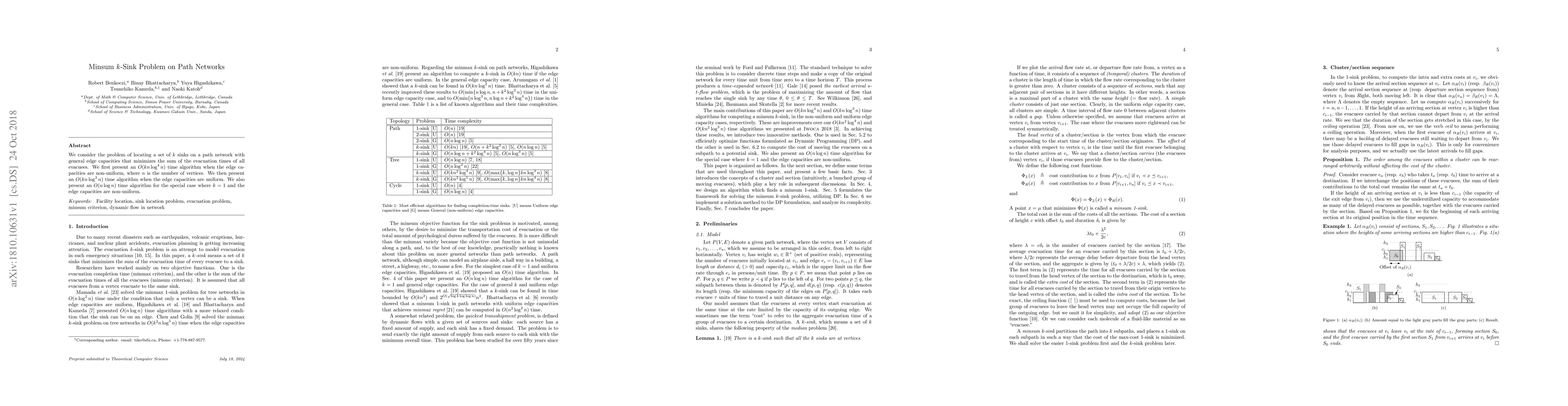 We consider the problem of locating a set of $k$ sinks on a path network with general edge capacities that minimizes the sum of the evacuation times of all evacuees. We first present an $O(kn\log^4n)$ time algorithm when the edge capacities are non-uniform, where $n$ is the number of vertices. We then present an $O(kn\log^3 n)$ time algorithm when the edge capacities are uniform. We also present an $O(n\log n)$ time algorithm for the special case where $k=1$ and the edge capacities are non-uniform.
