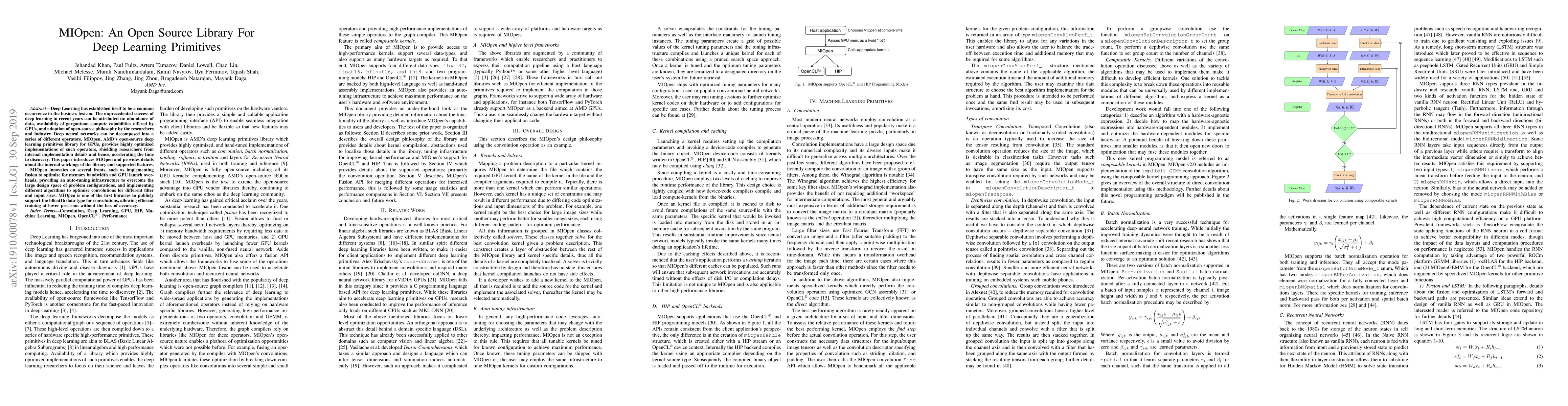 MIOpen is an open-source library by AMD for deep learning primitives on GPUs, offering optimized implementations of neural network operators. It includes features like fusion, auto-tuning, and support for bfloat16 data-type to enhance efficiency and performance.