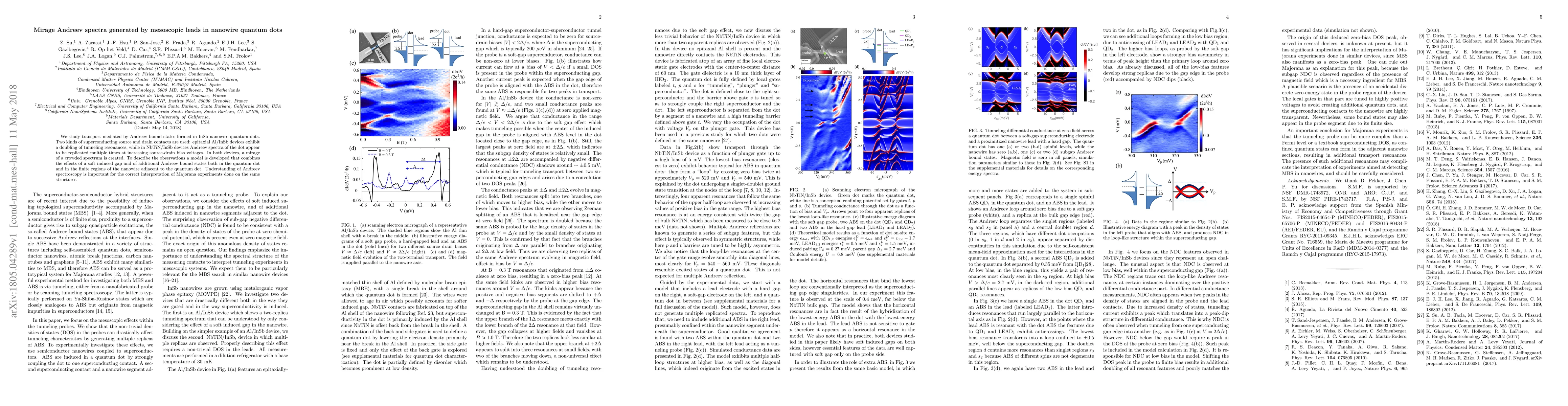 This paper investigates transport through InSb nanowire quantum dots with superconducting contacts, revealing mirage Andreev spectra due to induced gaps and additional Andreev bound states. The study highlights the importance of these phenomena for interpreting Majorana experiments in similar structures.