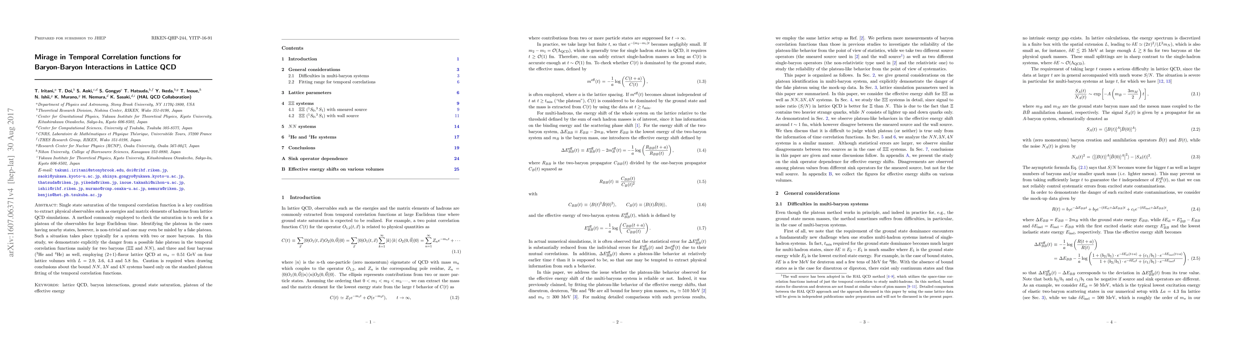 Single state saturation of the temporal correlation function is a key condition to extract physical observables such as energies and matrix elements of hadrons from lattice QCD simulations. A method commonly employed to check the saturation is to seek for a plateau of the observables for large Euclidean time. Identifying the plateau in the cases having nearby states, however, is non-trivial and one may even be misled by a fake plateau. Such a situation takes place typically for the system with two or more baryons. In this study, we demonstrate explicitly the danger from a possible fake plateau in the temporal correlation functions mainly for two baryons ($\Xi\Xi$ and $NN$), and three and four baryons ($^3{\rm He}$ and $^4{\rm He})$ as well, employing (2+1)-flavor lattice QCD at $m_{\pi}=0.51$ GeV on four lattice volumes with $L=$ 2.9, 3.6, 4.3 and 5.8 fm. Caution is given for drawing conclusion on the bound $NN$, $3N$ and $4N$ systems only based on the temporal correlation functions.