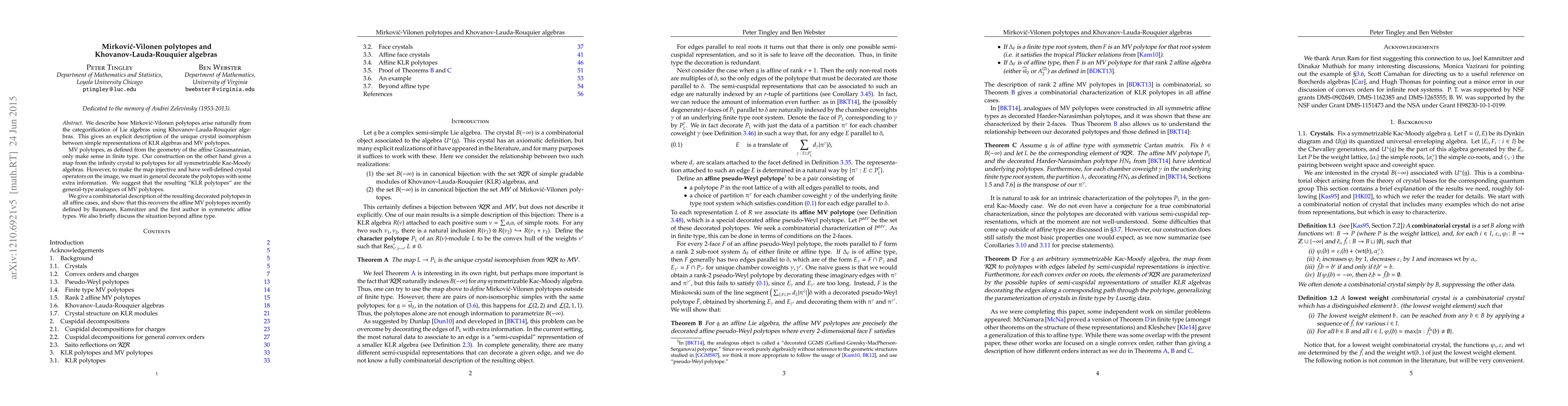 Research connects Mirkovic-Vilonen polytopes to Khovanov-Lauda-Rouquier algebras, providing a new understanding of their relationship in semi-simple Lie algebras.
