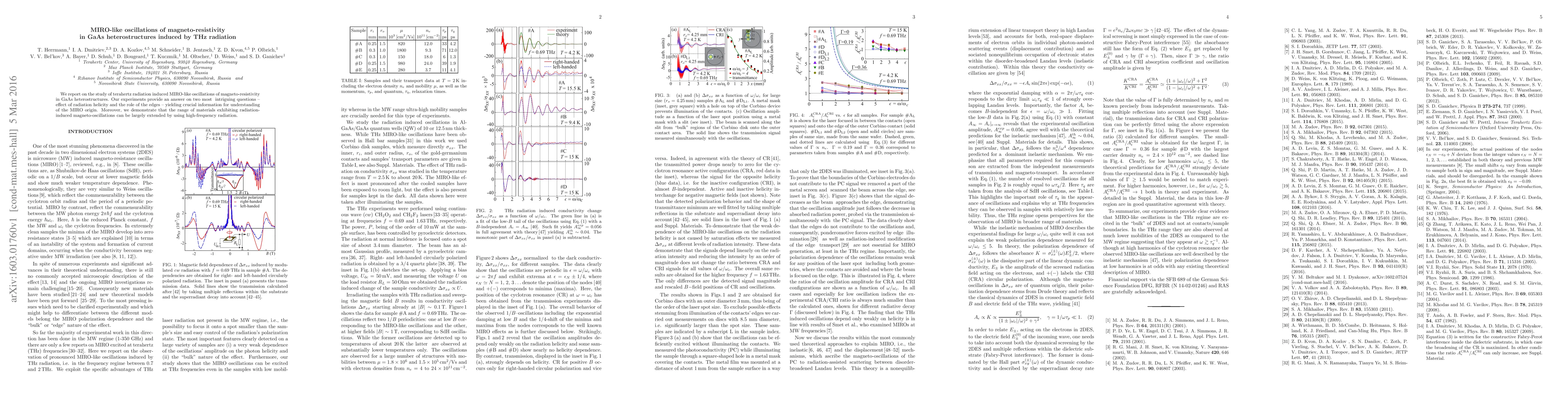 We report on the study of terahertz radiation induced MIRO-like oscillations of magneto-resistivity in GaAs heterostructures. Our experiments provide an answer on two most intriguing questions - effect of radiation helicity and the role of the edges - yielding crucial information for understanding of the MIRO origin. Moreover, we demonstrate that the range of materials exhibiting radiation-induced magneto-oscillations can be largely extended by using high-frequency radiation.