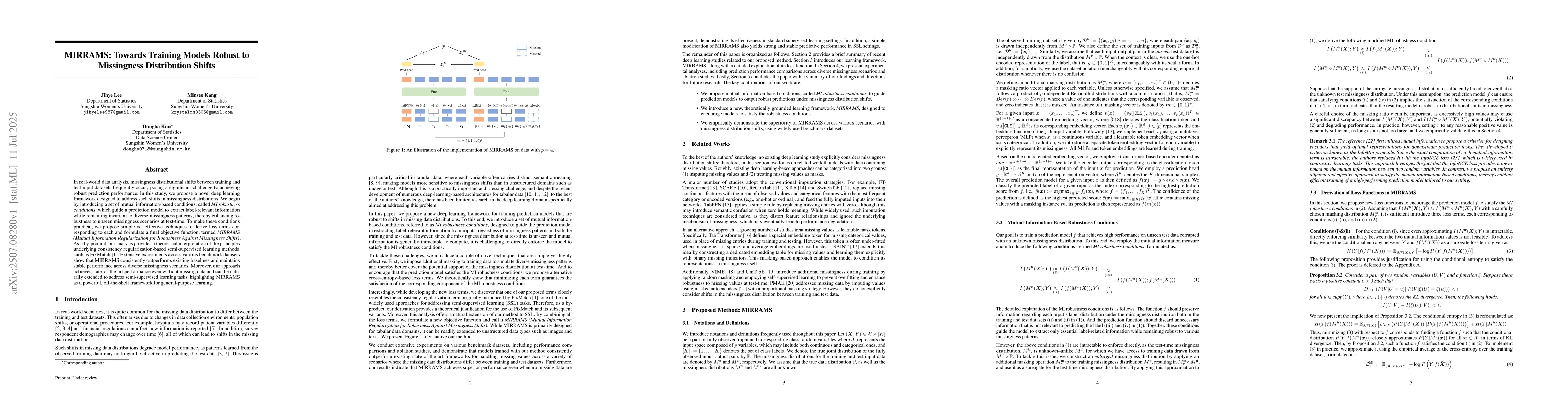 In real-world data analysis, missingness distributional shifts between training and test input datasets frequently occur, posing a significant challenge to achieving robust prediction performance. In this study, we propose a novel deep learning framework designed to address such shifts in missingness distributions. We begin by introducing a set of mutual information-based conditions, called MI robustness conditions, which guide a prediction model to extract label-relevant information while remaining invariant to diverse missingness patterns, thereby enhancing robustness to unseen missingness scenarios at test-time. To make these conditions practical, we propose simple yet effective techniques to derive loss terms corresponding to each and formulate a final objective function, termed MIRRAMS(Mutual Information Regularization for Robustness Against Missingness Shifts). As a by-product, our analysis provides a theoretical interpretation of the principles underlying consistency regularization-based semi-supervised learning methods, such as FixMatch. Extensive experiments across various benchmark datasets show that MIRRAMS consistently outperforms existing baselines and maintains stable performance across diverse missingness scenarios. Moreover, our approach achieves state-of-the-art performance even without missing data and can be naturally extended to address semi-supervised learning tasks, highlighting MIRRAMS as a powerful, off-the-shelf framework for general-purpose learning.