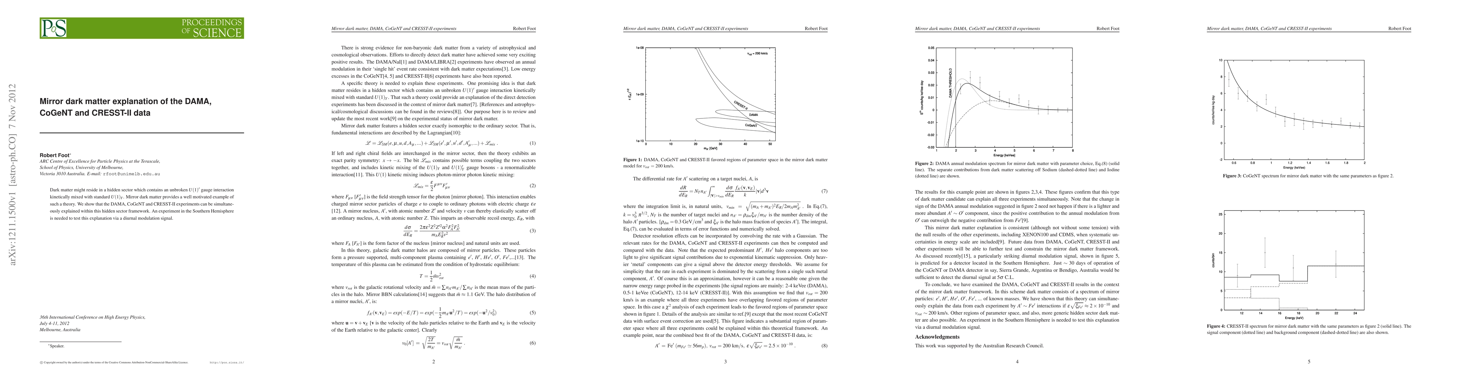 Dark matter might reside in a hidden sector which contains an unbroken $U(1)'$ gauge interaction kinetically mixed with standard $U(1)_Y$. Mirror dark matter provides a well motivated example of such a theory. We show that the DAMA, CoGeNT and CRESST-II experiments can be simultaneously explained within this hidden sector framework. An experiment in the Southern Hemisphere is needed to test this explanation via a diurnal modulation signal.