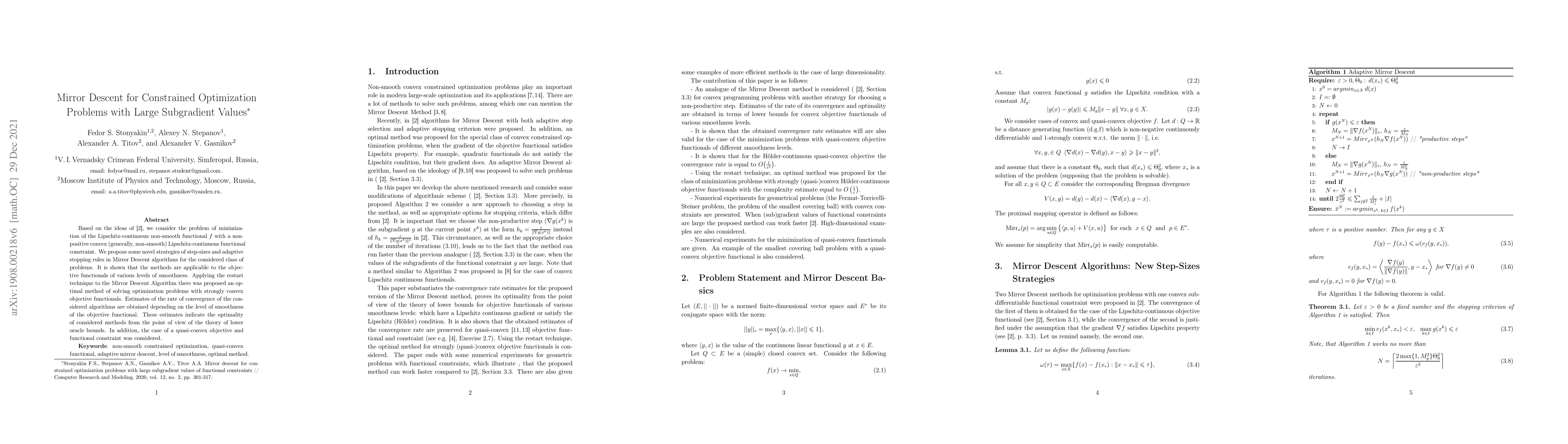 Mohammad Alkousa, Alexander Gasnikov, Fedor Stonyakin et al.