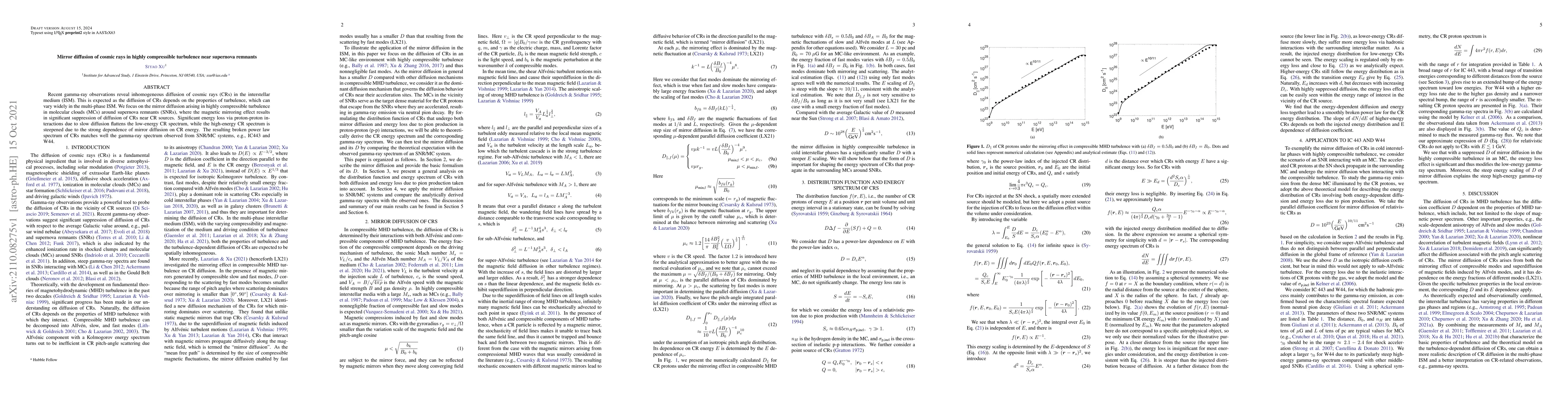 Research finds that cosmic rays in molecular clouds near supernova remnants diffuse unevenly due to highly compressible turbulence, resulting in a broken power law spectrum that matches observed gamma-ray spectra from these regions.