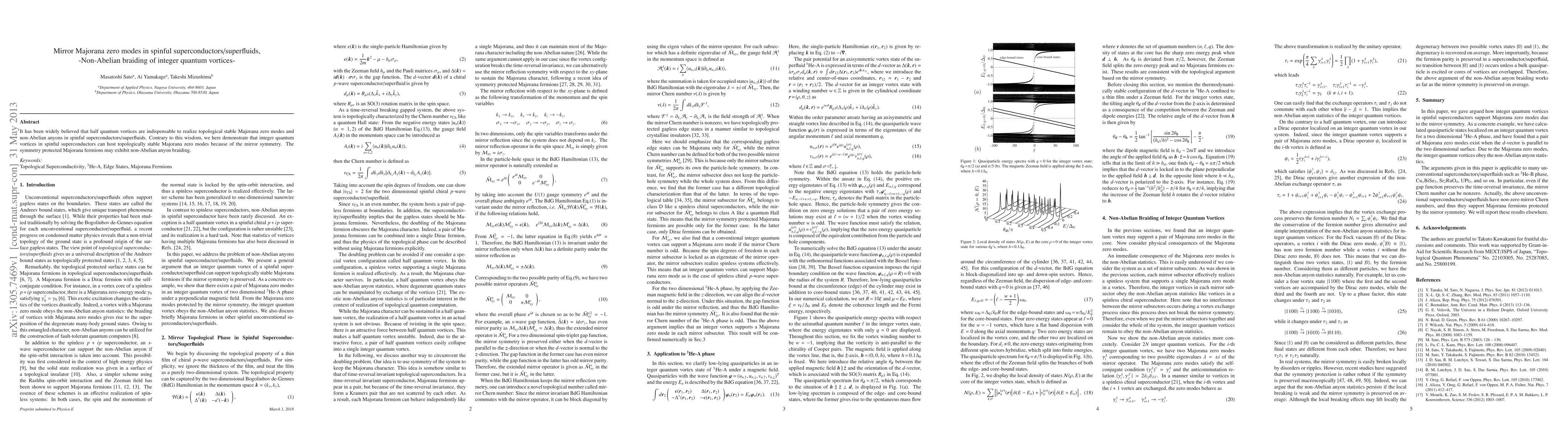 This paper demonstrates that topologically stable Majorana zero modes can be hosted by integer quantum vortices in spinful superconductors/superfluids via mirror symmetry, contrary to the conventional belief that half quantum vortices are required. These symmetry-protected Majorana fermions exhibit non-Abelian anyon braiding properties.