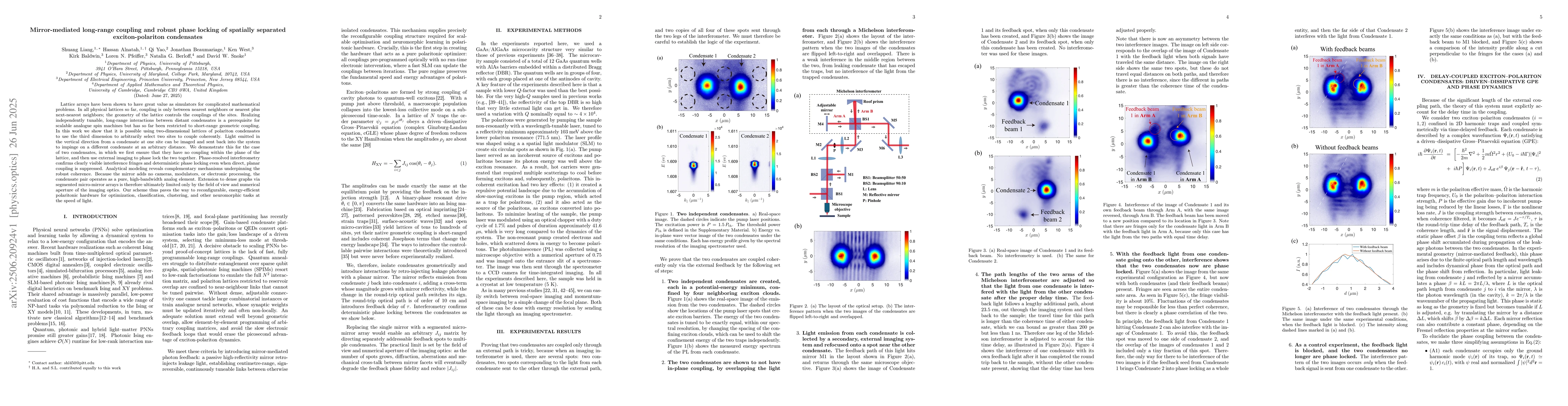 The paper provides a theoretical and experimental demonstration of long-range phase locking via mirror-mediated delayed optical feedback, supported by delay differential equations and oscillator models, establishing a new paradigm for nonlocal coupling in polariton systems.