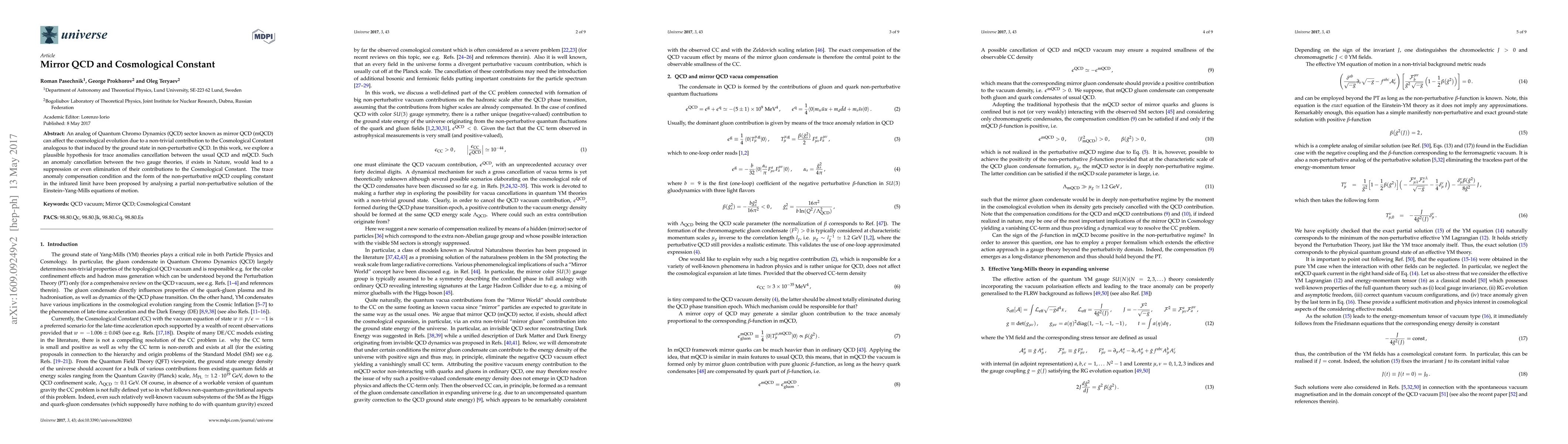 This paper investigates how mirror QCD (mQCD) can influence cosmological evolution by contributing to the Cosmological Constant, similar to non-perturbative QCD. It proposes a hypothesis for the cancellation of trace anomalies between usual QCD and mQCD, suggesting that such cancellation could suppress or eliminate their effects on the Cosmological Constant.