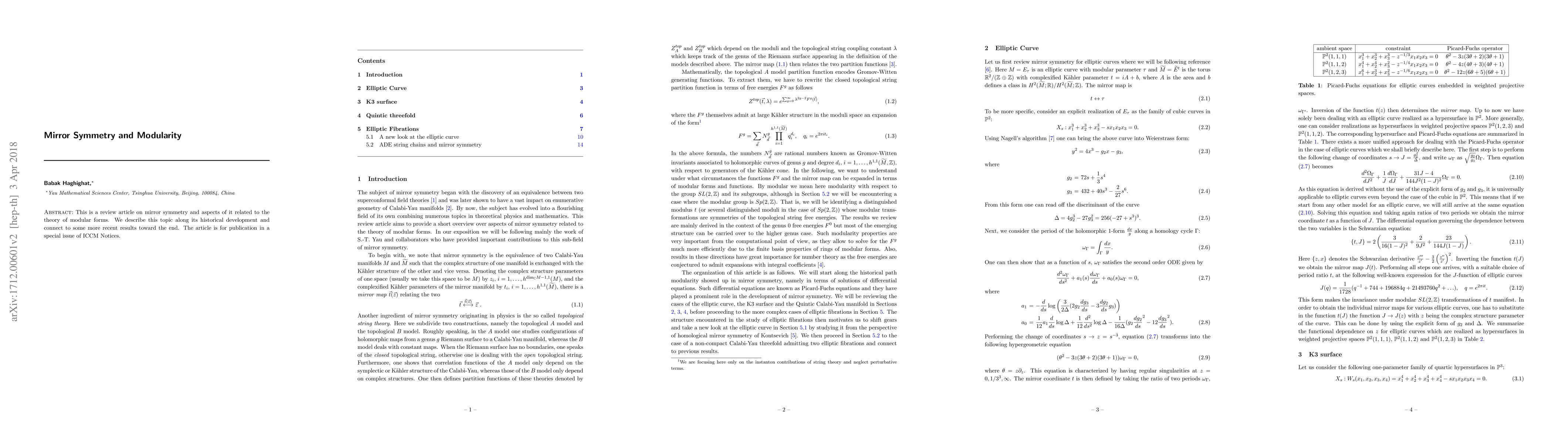 This is a review article on mirror symmetry and aspects of it related to the theory of modular forms. We describe this topic along its historical development and connect to some more recent results toward the end. The article is for publication in a special issue of ICCM Notices.