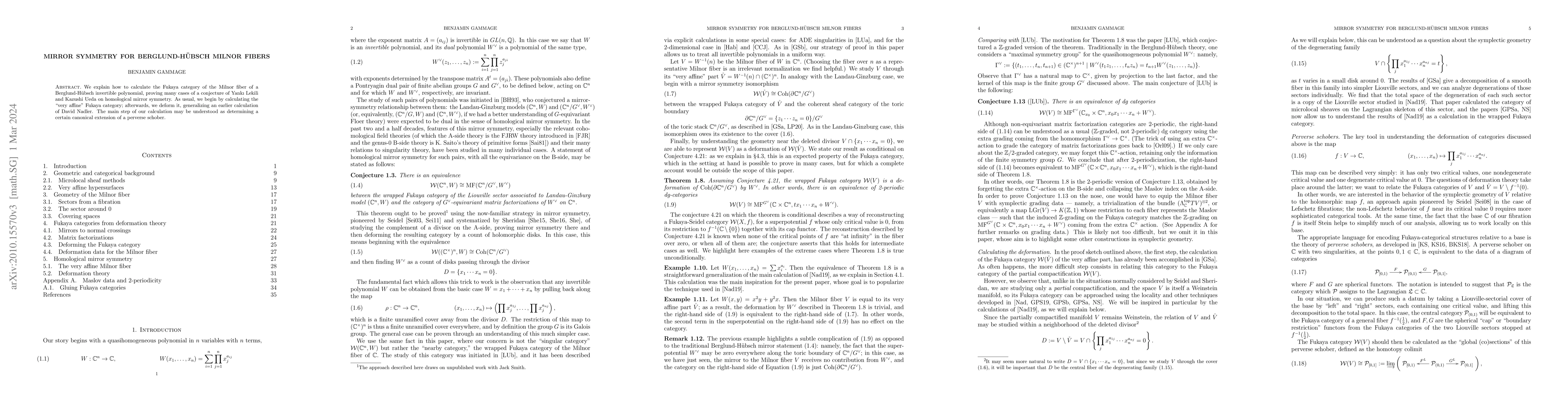 We explain how to calculate the Fukaya category of the Milnor fiber of a Berglund-H\"ubsch invertible polynomial, mostly proving a conjecture of Yank{\i} Lekili and Kazushi Ueda on homological mirror symmetry. As usual, we begin by calculating the "very affine" Fukaya category; afterwards, we deform it, generalizing an earlier calculation of David Nadler. The main step of our calculation may be understood as determining a certain canonical extension of a perverse schober.