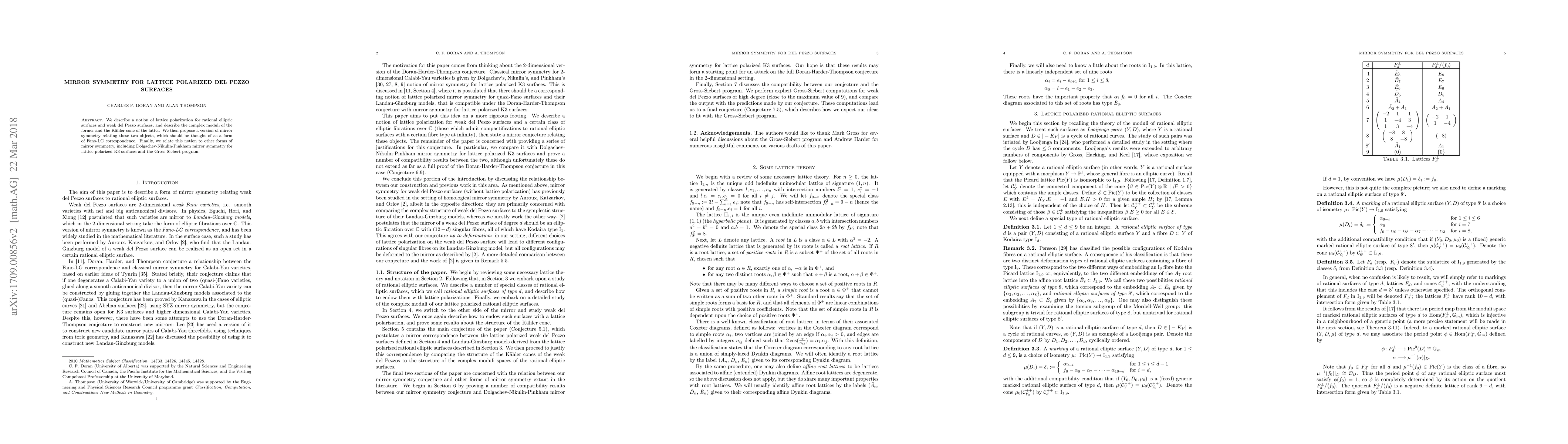 This paper introduces lattice polarization for rational elliptic surfaces and weak del Pezzo surfaces, detailing their complex moduli and Kähler cones respectively. It proposes a version of mirror symmetry connecting these objects akin to a Fano-LG correspondence and links it to other mirror symmetry frameworks.