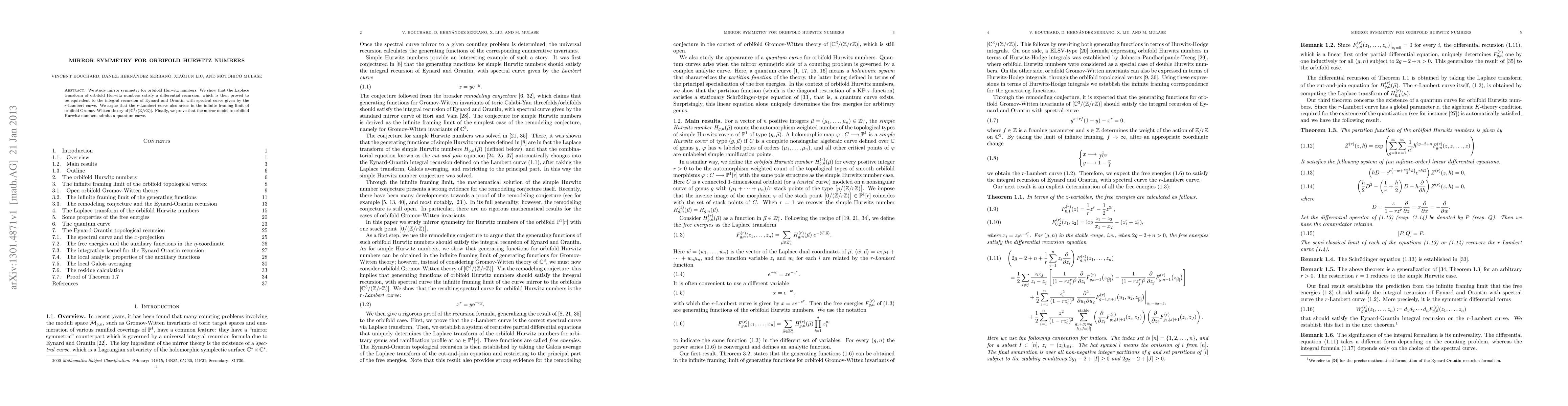 We study mirror symmetry for orbifold Hurwitz numbers. We show that the Laplace transform of orbifold Hurwitz numbers satisfy a differential recursion, which is then proved to be equivalent to the integral recursion of Eynard and Orantin with spectral curve given by the r-Lambert curve. We argue that the r-Lambert curve also arises in the infinite framing limit of orbifold Gromov-Witten theory of [C3/(Z/rZ)]. Finally, we prove that the mirror model to orbifold Hurwitz numbers admits a quantum curve.