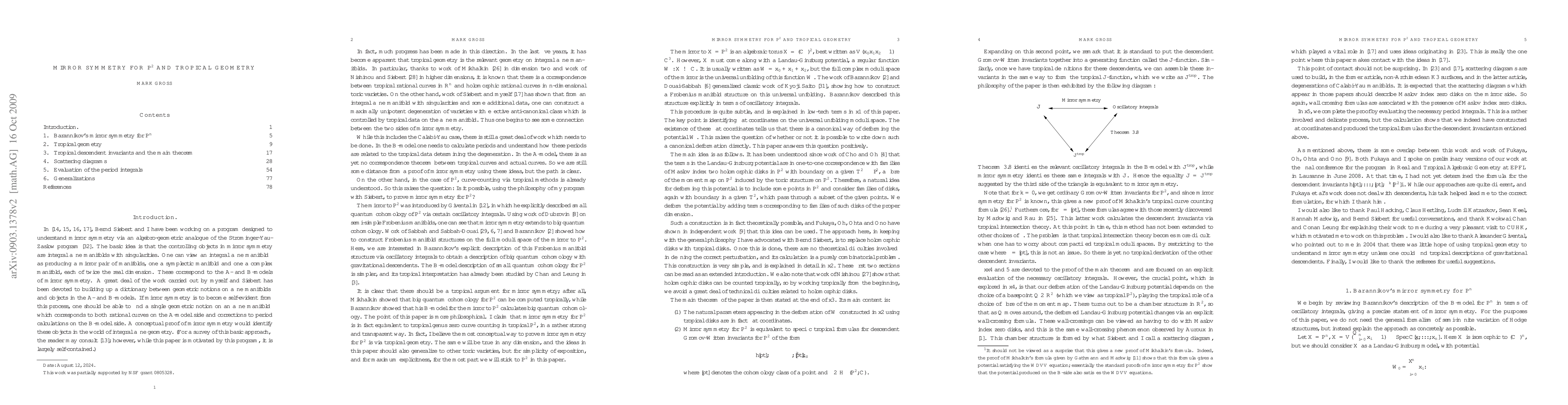 This paper establishes a connection between mirror symmetry for P^2 and tropical geometry, demonstrating that oscillatory integrals yield a Frobenius manifold structure on the moduli space of the mirror, which can be deformed via tropical disk counts, and that these integrals correspond directly to tropical curve counts, including gravitational descendent invariants.