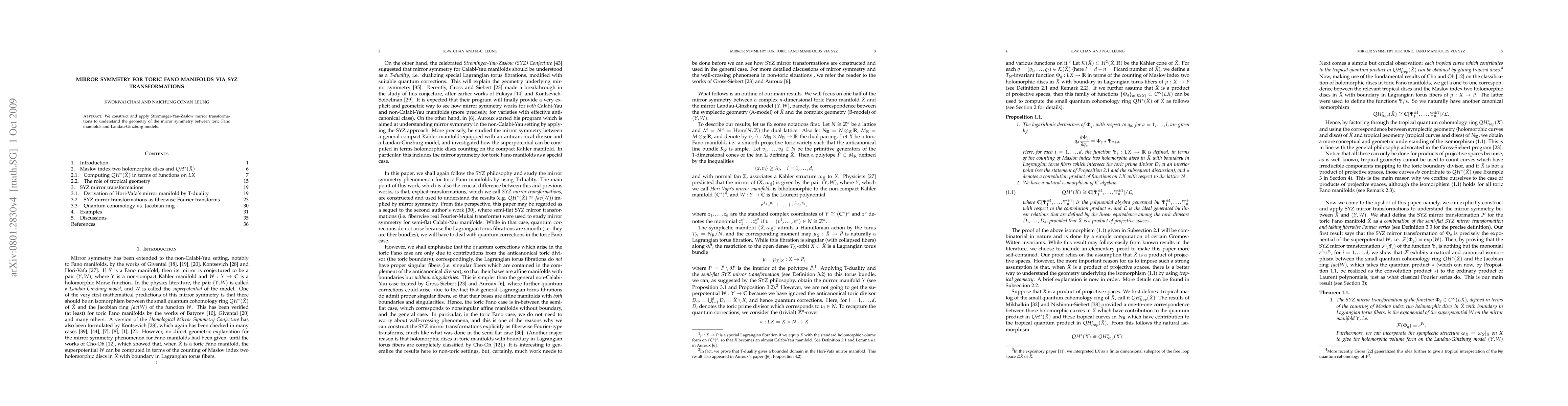Summary: This paper constructs Strominger-Yau-Zaslow mirror transformations to explore the geometric relationship between toric Fano manifolds and Landau-Ginzburg models, providing insights into mirror symmetry.