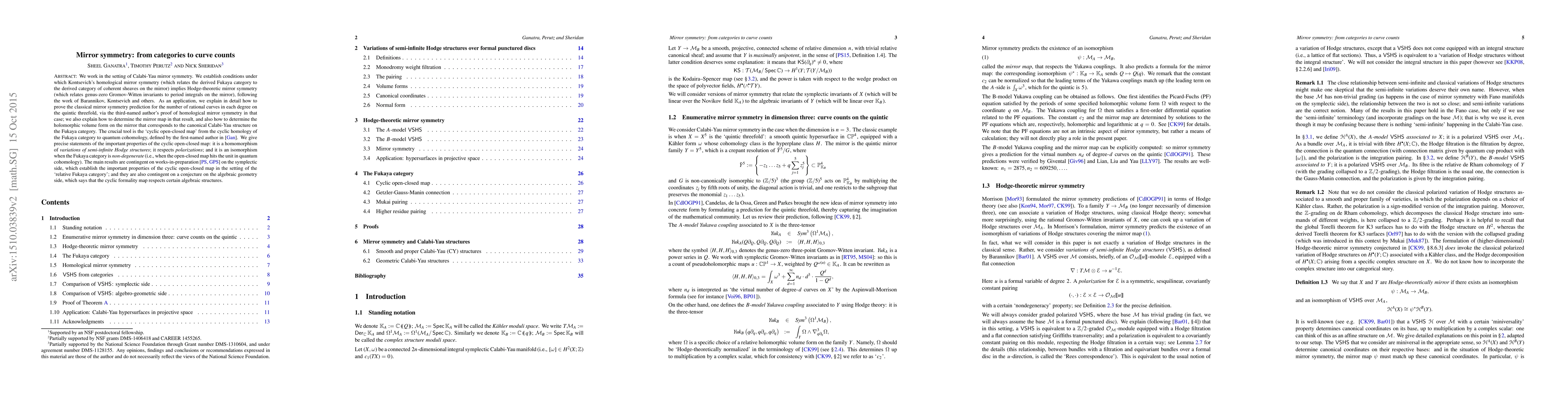 Researchers establish conditions for mirror symmetry between Calabi-Yau manifolds, allowing them to relate genus-zero Gromov-Witten invariants to period integrals on the mirror, with applications to calculating rational curve counts on quintic threefolds.