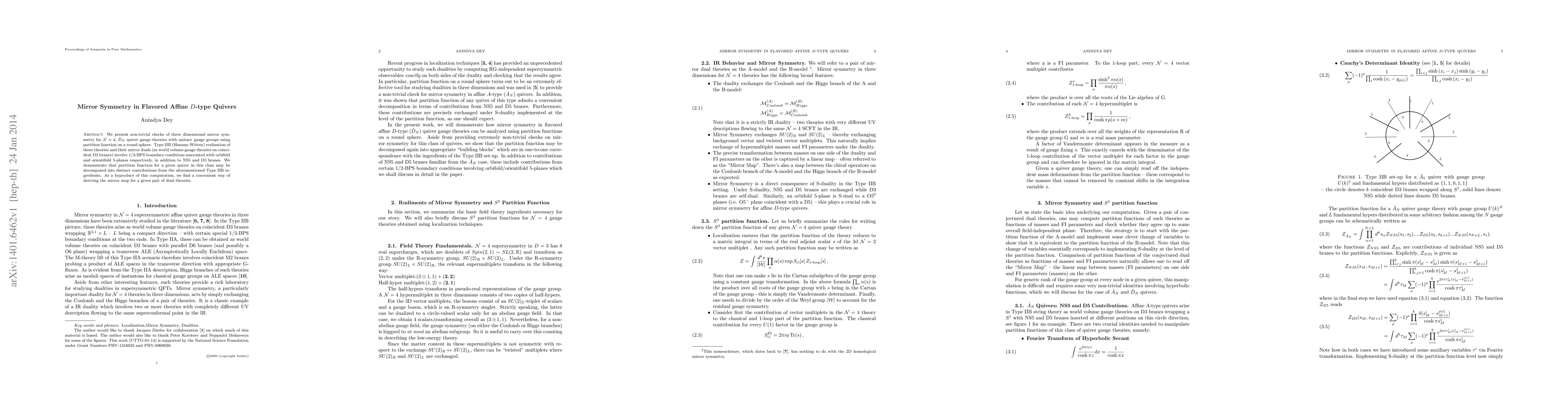 This research checks three-dimensional mirror symmetry for $\mathcal{N}=4$, $\hat{D}_N$ quiver gauge theories using their partition functions on a sphere. It decomposes these partition functions into contributions from Type IIB ingredients, leading to a method for deriving the mirror map between dual theories.