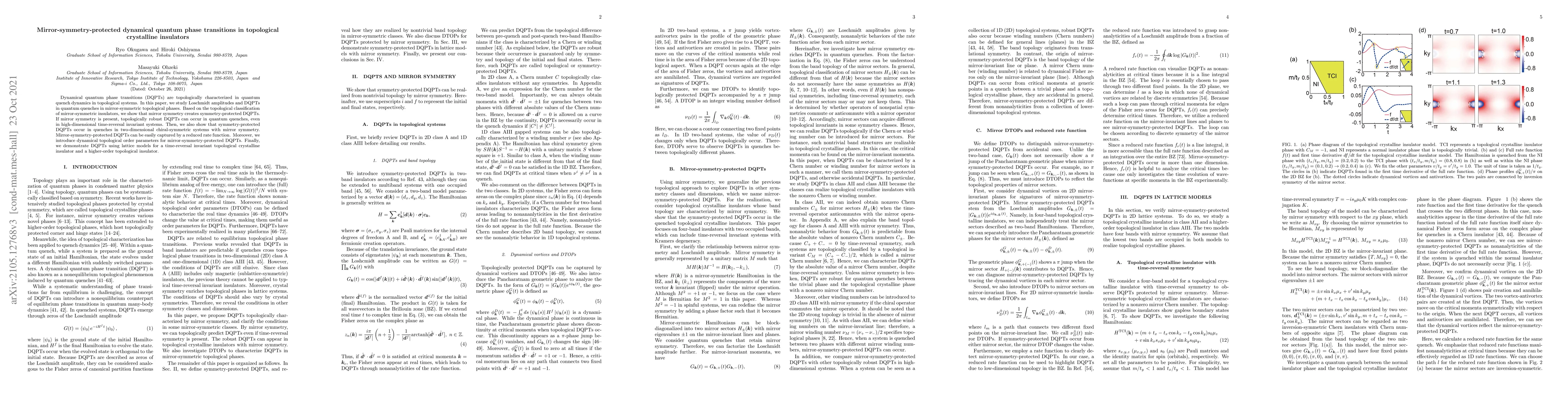 This paper investigates dynamical quantum phase transitions (DQPTs) in topological systems under quantum quenches, specifically focusing on mirror-symmetric topological phases. It demonstrates that mirror symmetry can protect topologically robust DQPTs and introduces dynamical topological order parameters for these transitions, providing a framework for understanding these phenomena in high-dimensional systems.