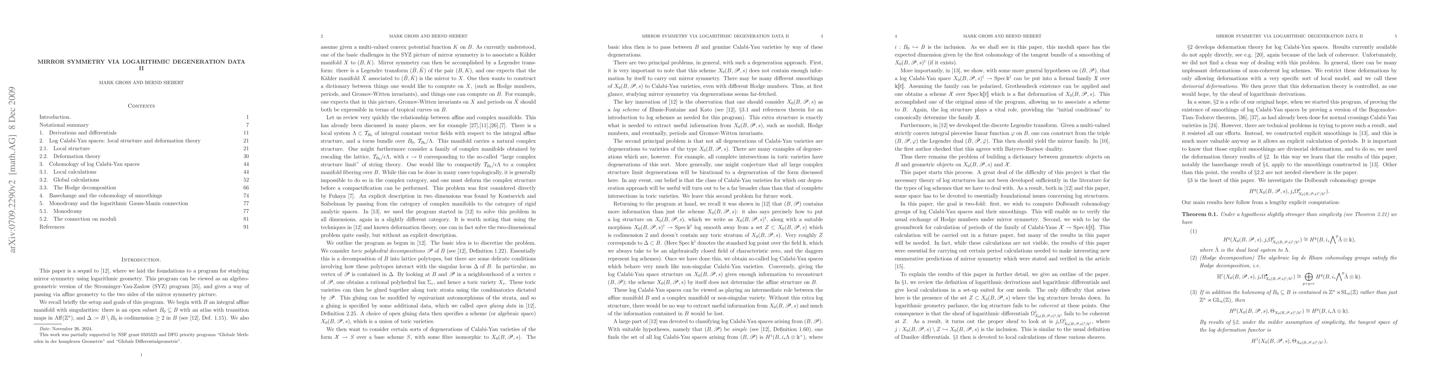 This paper calculates the Dolbeault cohomology of a Calabi-Yau variety linked to an affine manifold via logarithmic degeneration, proving a base-change theorem for cohomology in a logarithmic setting. It demonstrates the expected interchange of Hodge numbers in mirror symmetry and provides an explicit description of monodromy in smoothing.