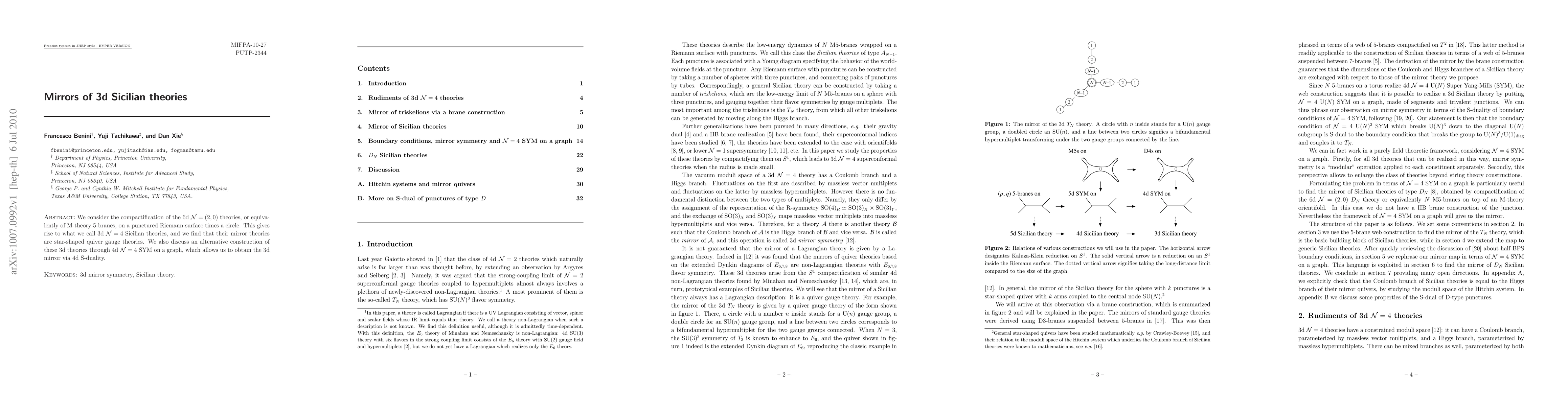 This paper explores the compactification of 6d N=(2,0) theories to derive 3d N=4 Sicilian theories, showing their mirror duals correspond to star-shaped quiver gauge theories. An alternative construction via 4d N=4 SYM on a graph demonstrates the 3d mirror via 4d S-duality.