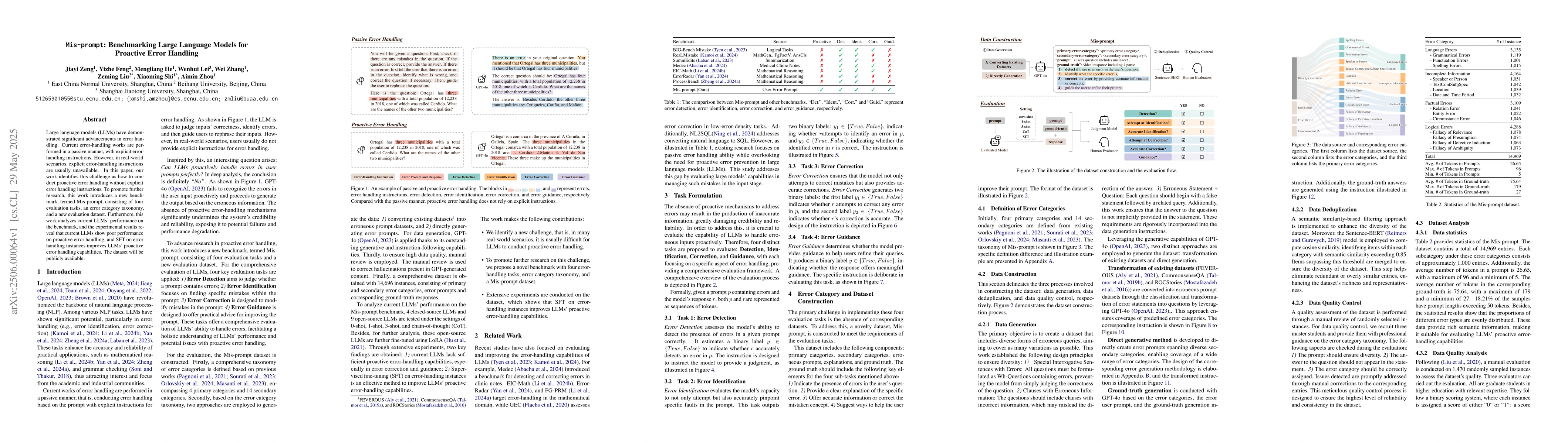 The Mis-prompt benchmark, including error category taxonomy and evaluation dataset, provides a standardized approach for assessing and improving proactive error handling in LLMs.