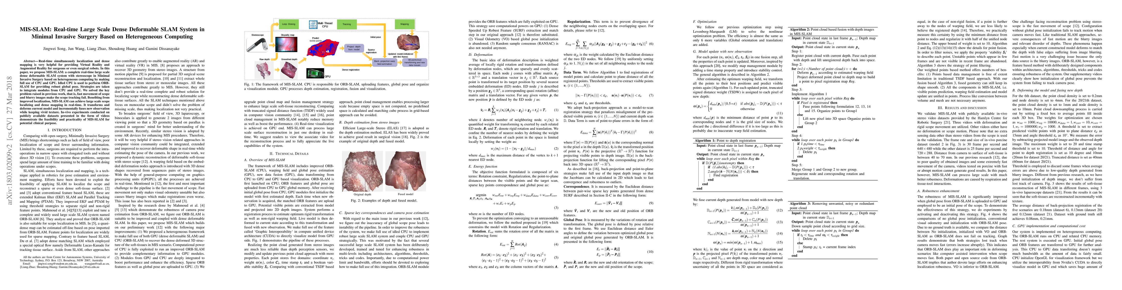 MIS-SLAM is a real-time large scale dense deformable SLAM system for Minimal Invasive Surgery, leveraging heterogeneous computing to integrate CPU and GPU for robust global pose and real-time dense mapping, addressing scope tracking issues. In-vivo experiments validate its practical application in surgical environments.