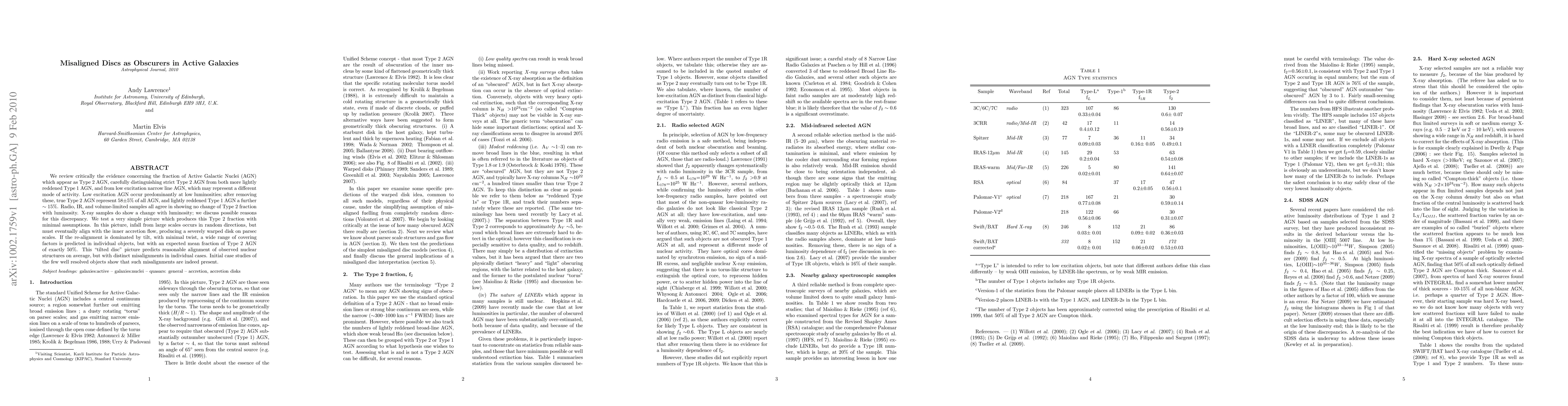 We review critically the evidence concerning the fraction of Active Galactic Nuclei (AGN) which appear as Type 2 AGN, carefully distinguishing strict Type 2 AGN from both more lightly reddened .Type 1 AGN, and from low excitation narrow line AGN, which may represent a different mode of activity. Low excitation AGN occur predominantly at low luminosities; after removing these, true Type 2 AGN represent 58% of all AGN, and lightly reddened Type 1 AGN a further ~15%. Radio, IR, and volume-limited samples all agree in showing no change of Type 2 fraction with luminosity. X-ray samples do show a change with luminosity; we discuss possible reasons for this discrepancy. We test a very simple picture which produces this Type 2 fraction with minimal assumptions. In this picture, infall from large scales occurs in random directions, but must eventually align with the inner accretion flow, producing a severely warped disk on parsec scales. If the re-alignment is dominated by tilt, with minimal twist, a wide range of covering factors is predicted in individual objects, but with an expected mean fraction of Type 2 AGN of exactly 50%. This 'tilted disc' picture predicts reasonable alignment of observed nuclear structures on average, but with distinct misalignments in individual cases. Initial case studies of the few well resolved objects show that such misalignments are indeed present.