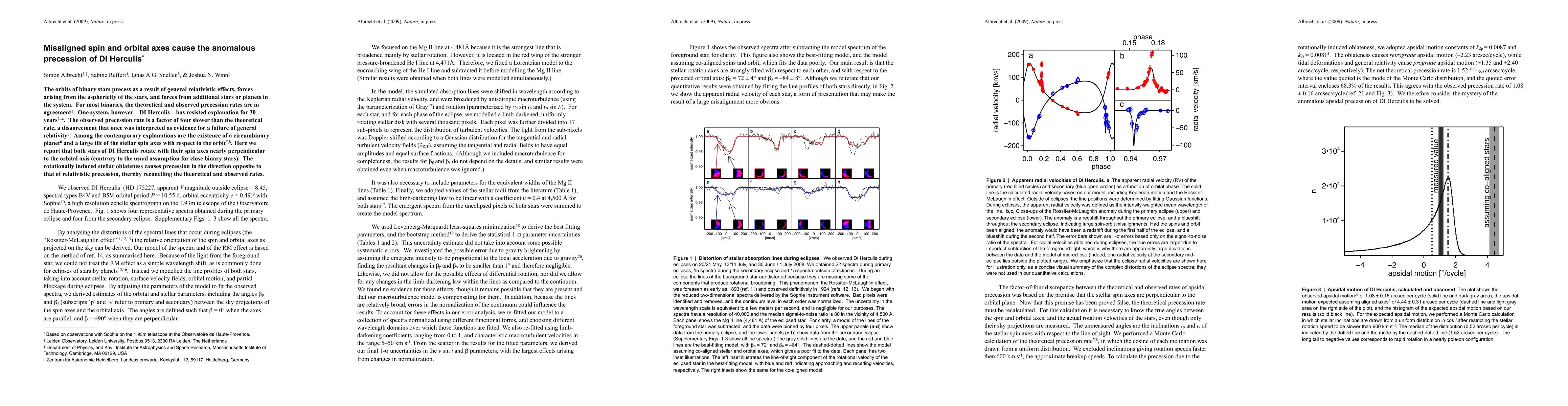 The binary star system DI Herculis exhibits anomalous precession due to the misalignment of its spin and orbital axes, which counters the expected relativistic precession and explains the observed discrepancy. This misalignment leads to rotationally induced oblateness that causes precession in the opposite direction, resolving the long-standing disagreement between theoretical and observed precession rates.